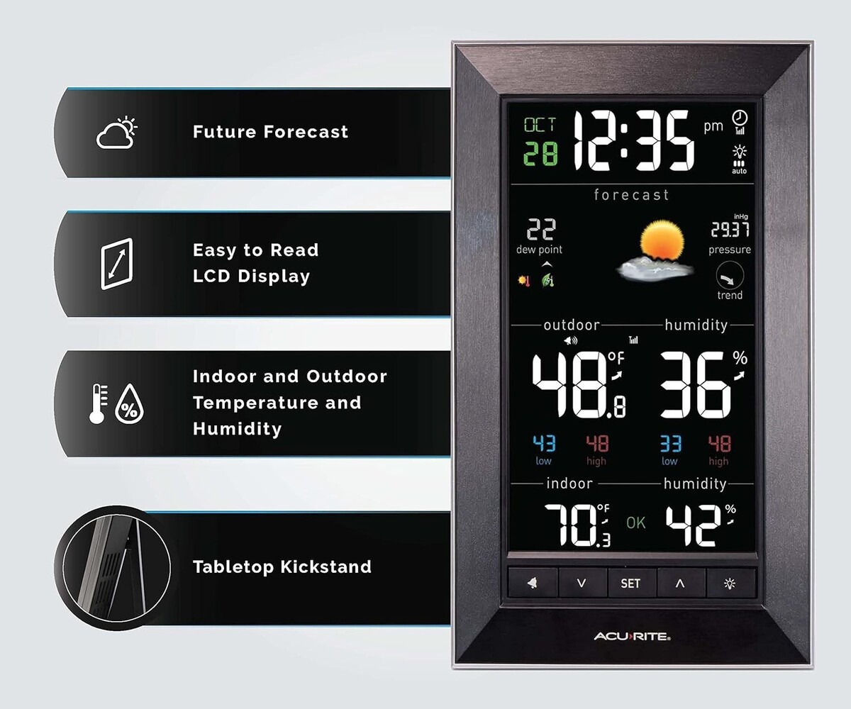 Stylish Digital Weather Station with Indoor/Outdoor Monitoring, 24-Hour Forecast