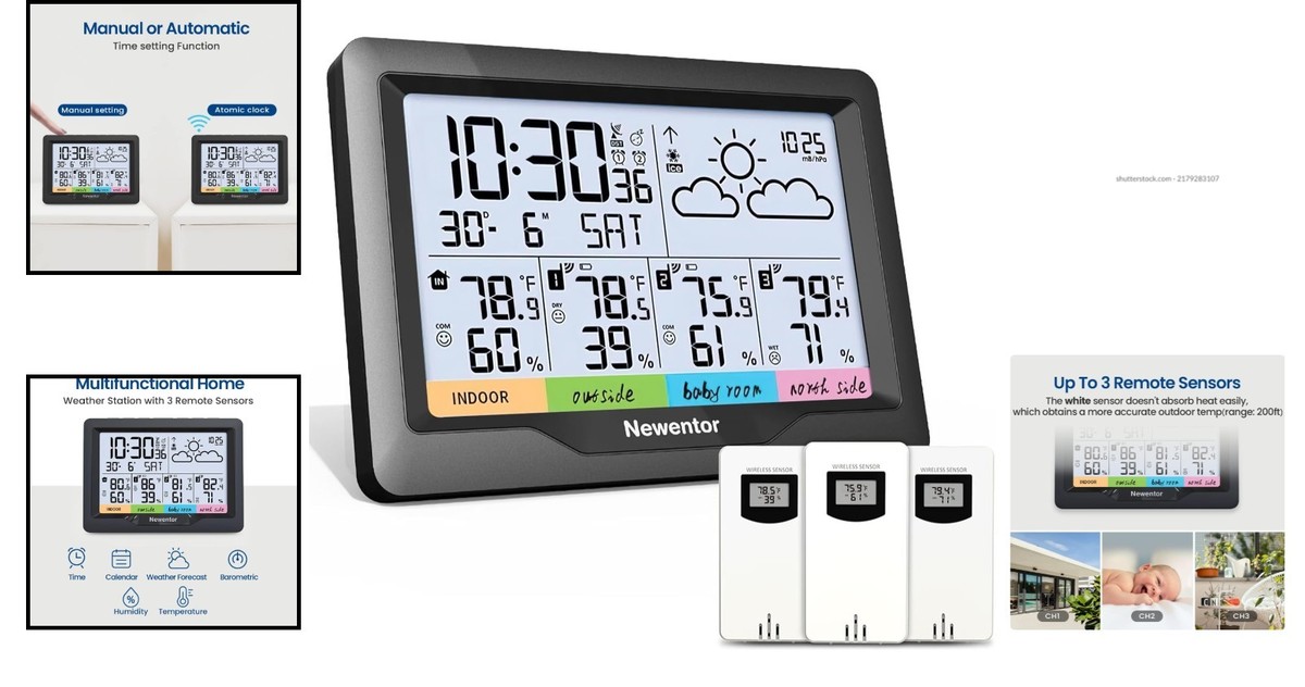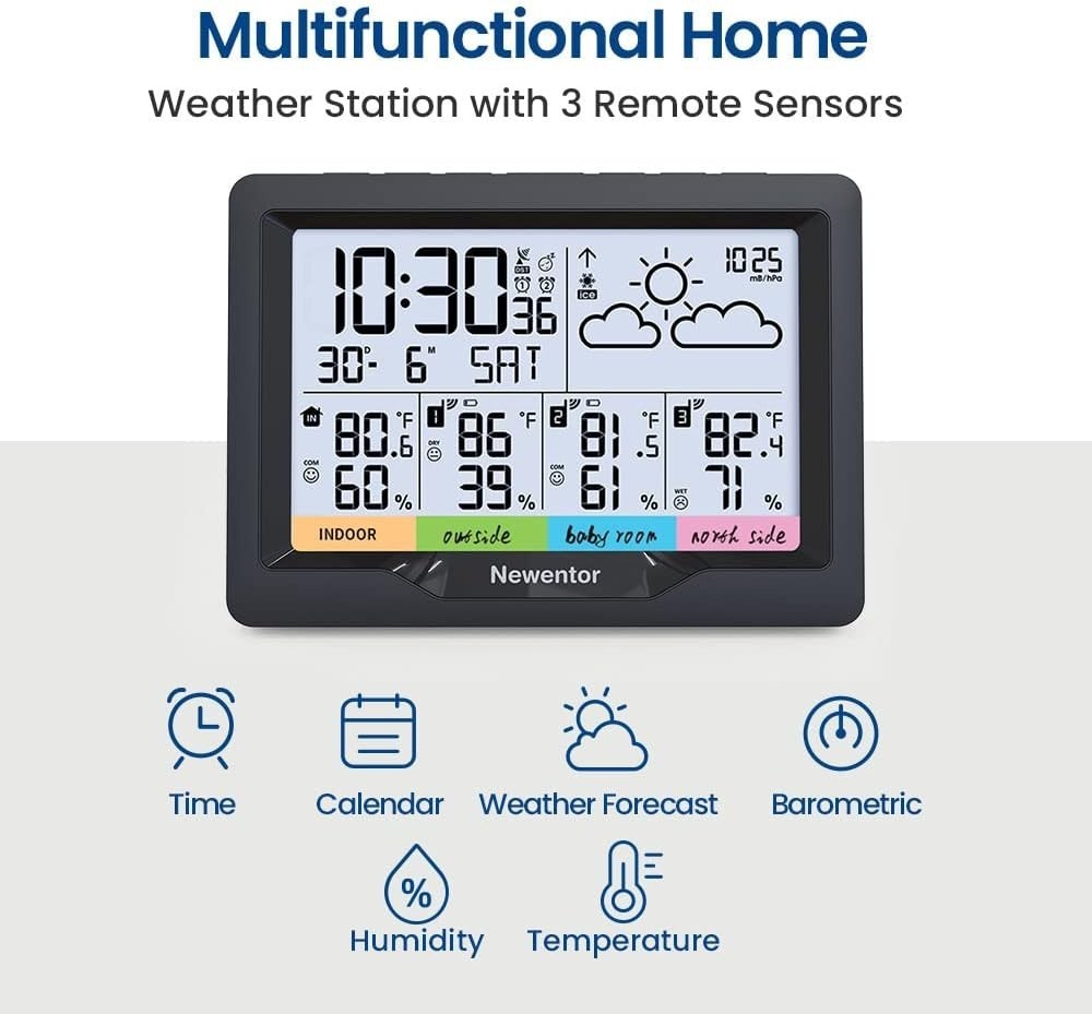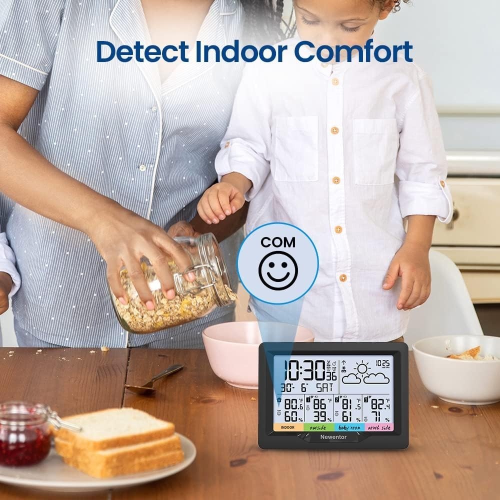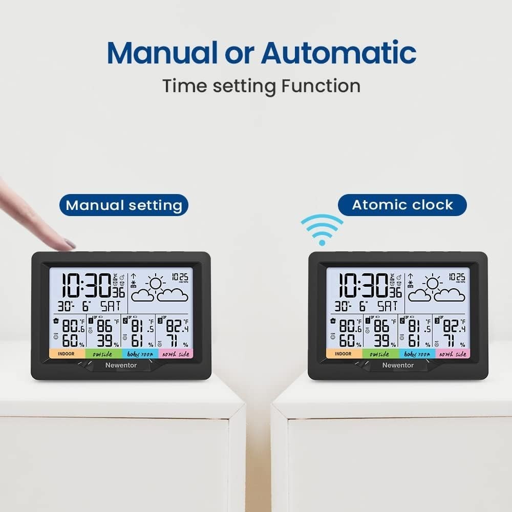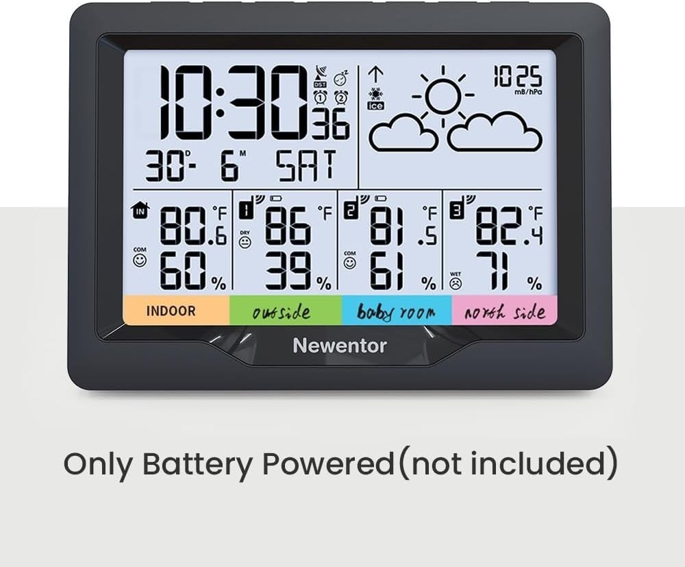 Indoor Outdoor Weather Station: Real-Time Temperature & Humidity Monitor, Black