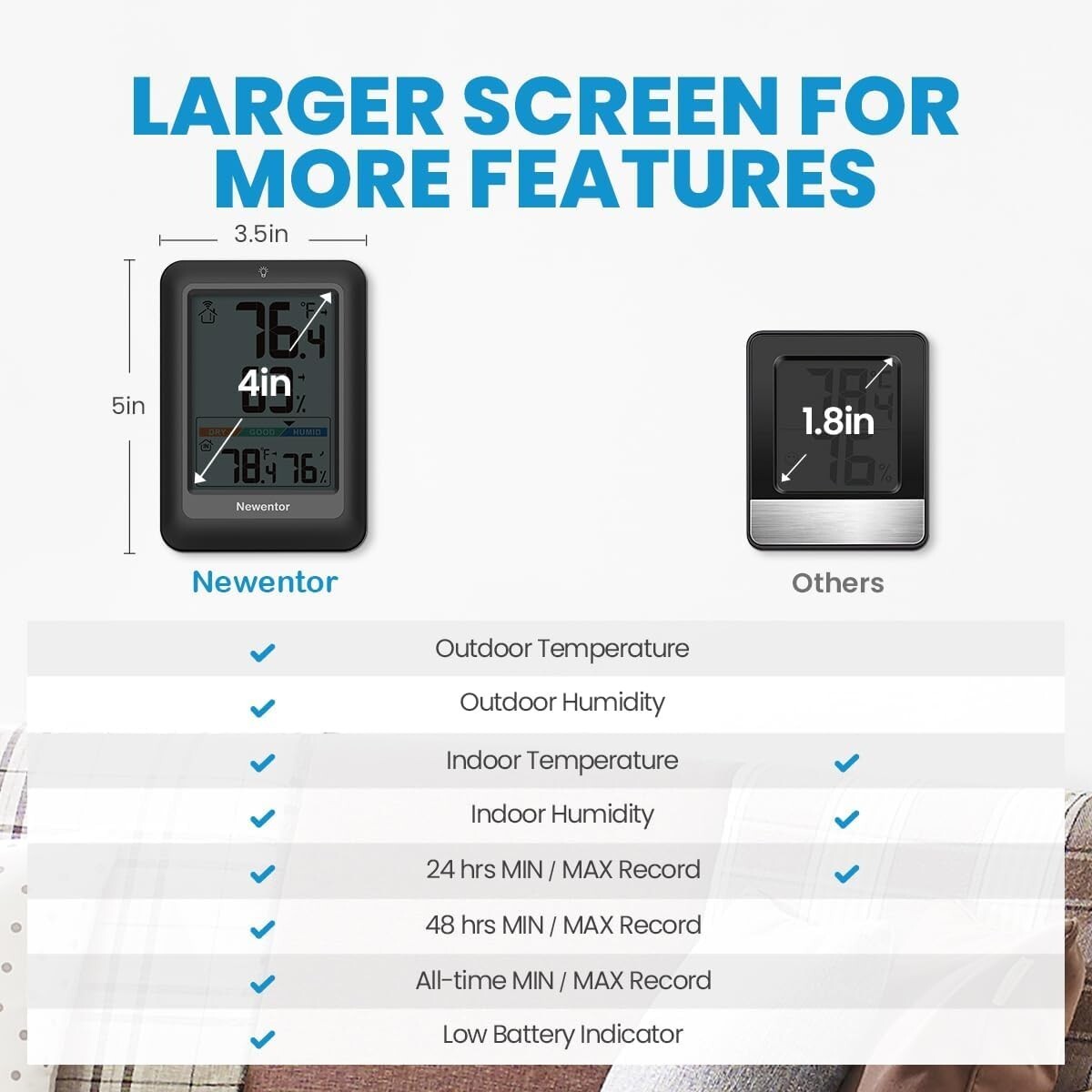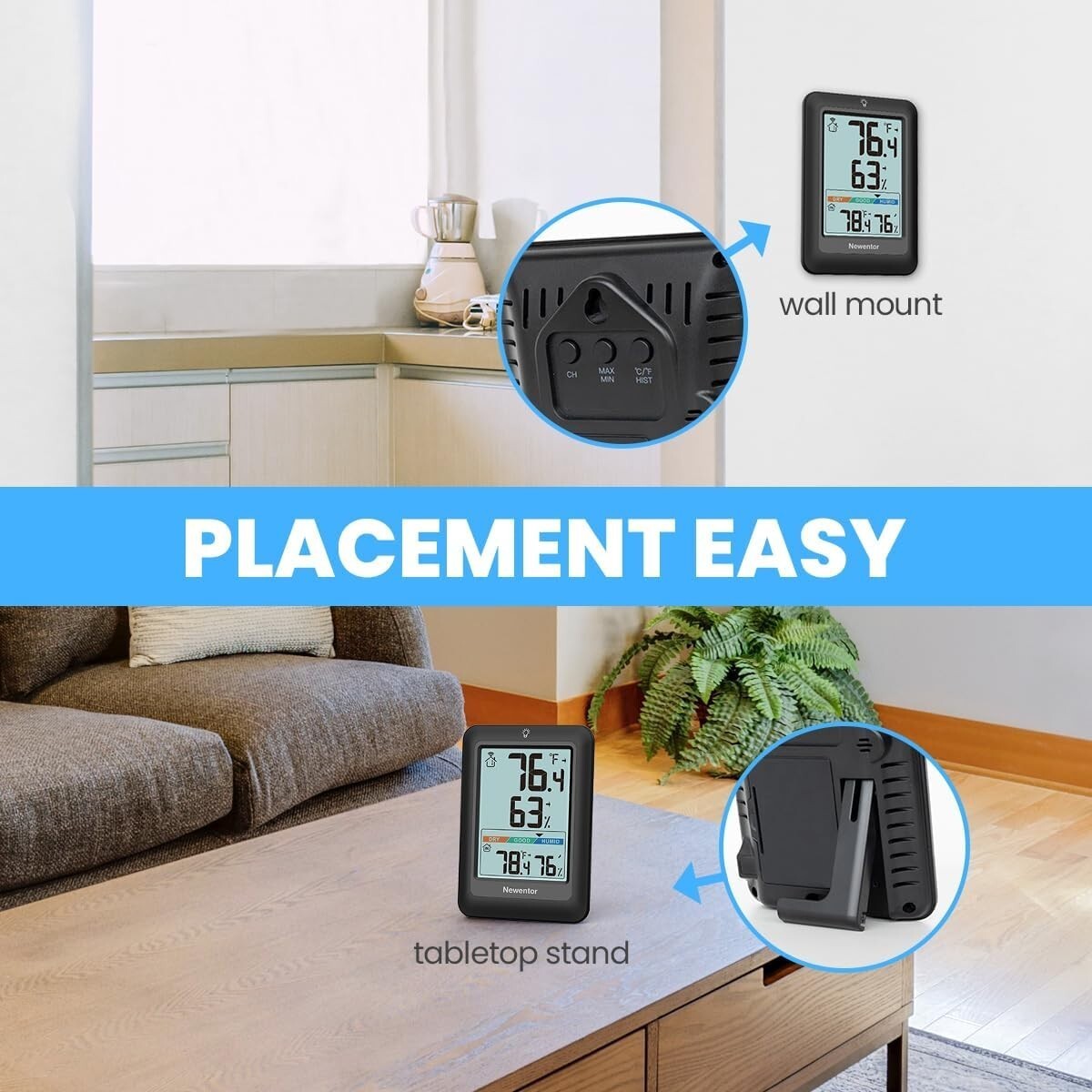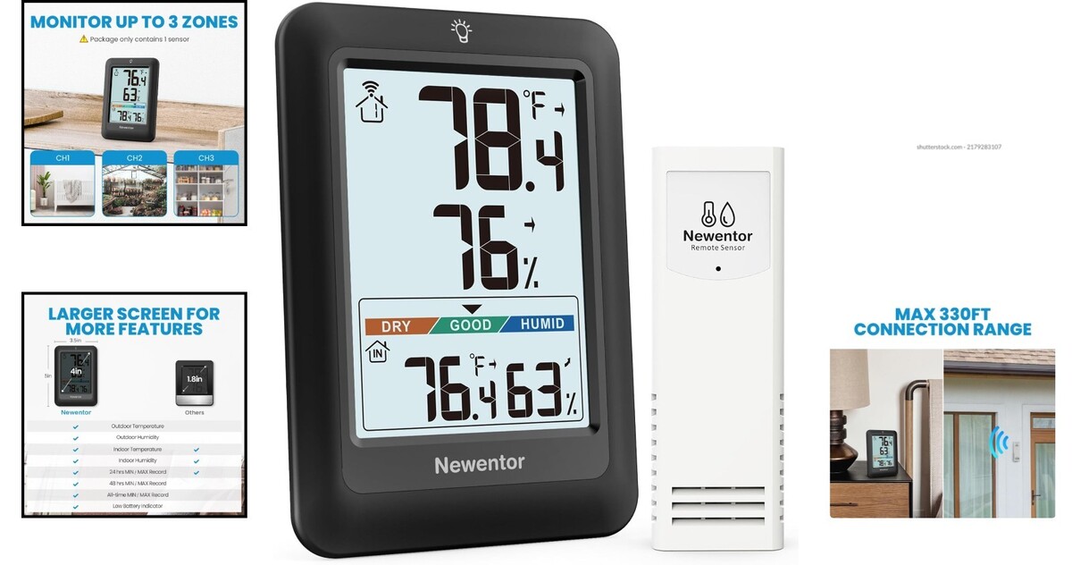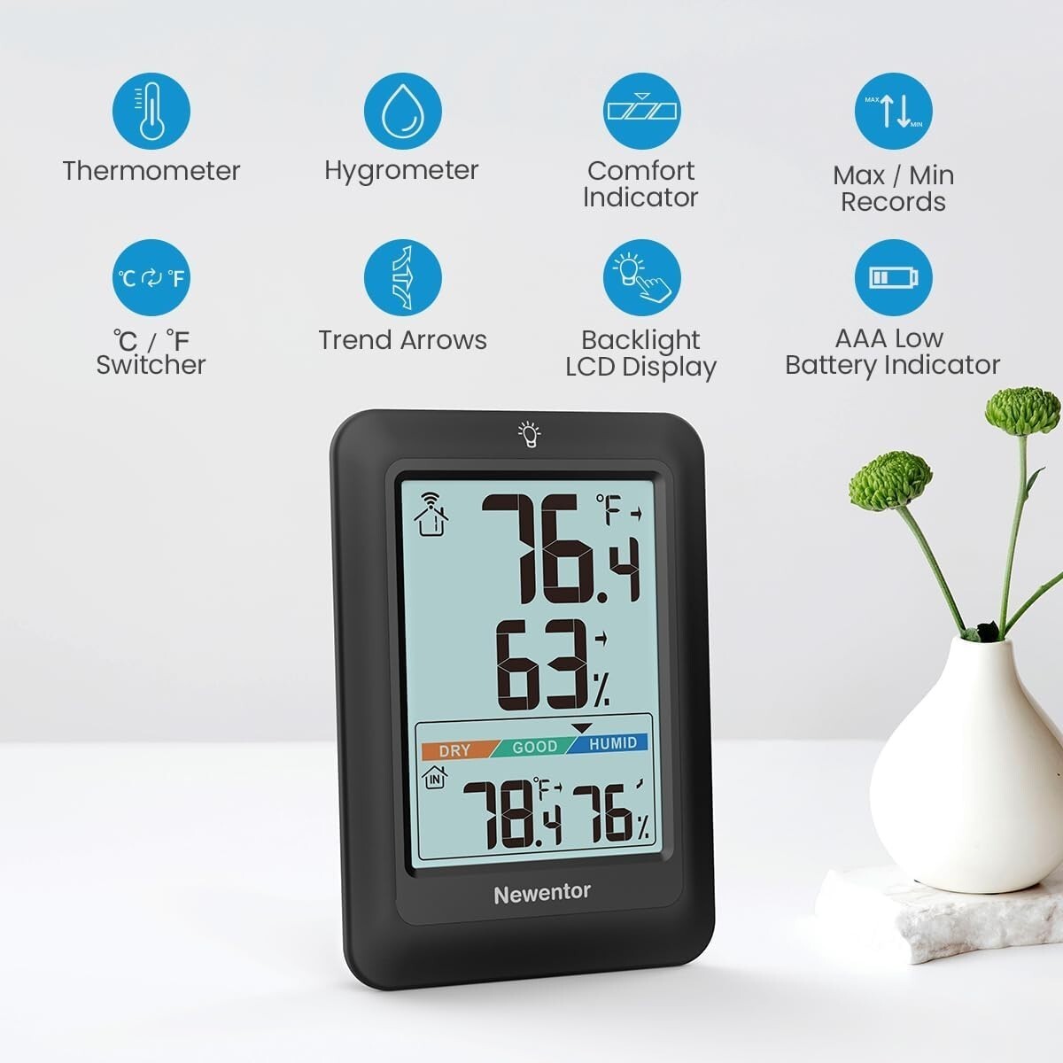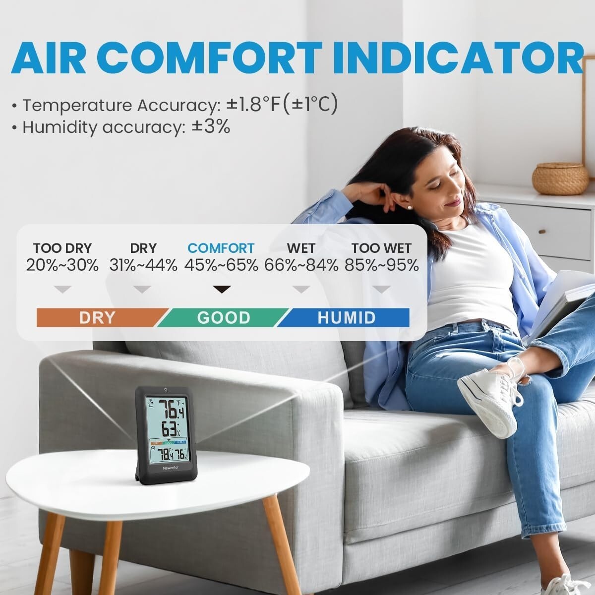 High Accuracy Wireless Thermometer & Comfort Indicator for Indoor Outdoor Use