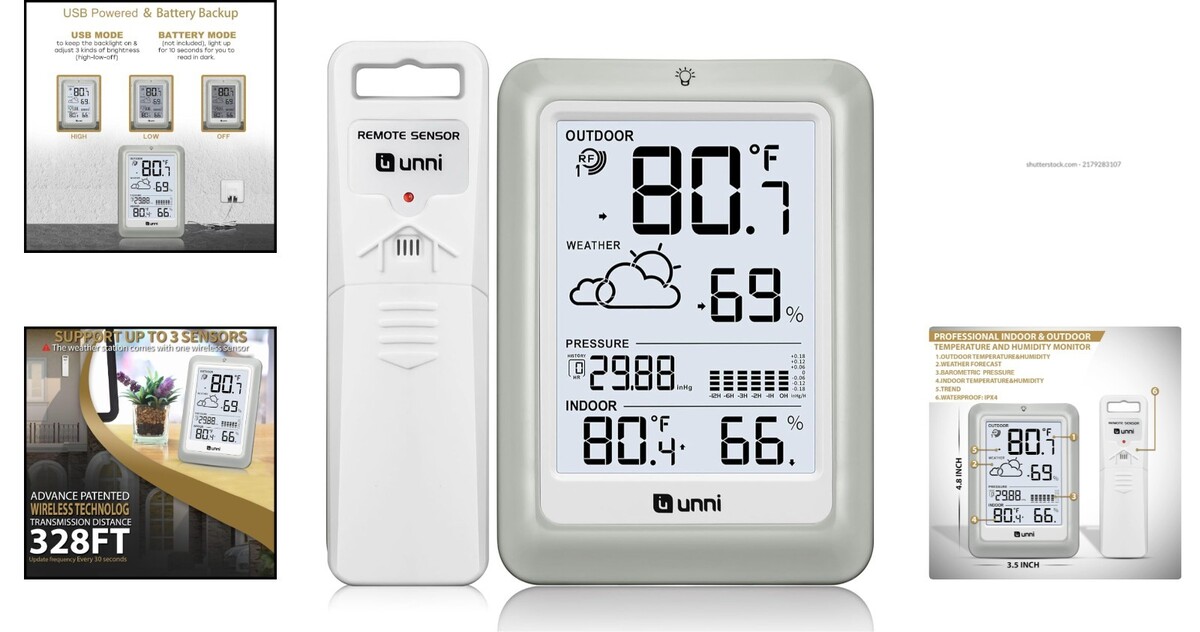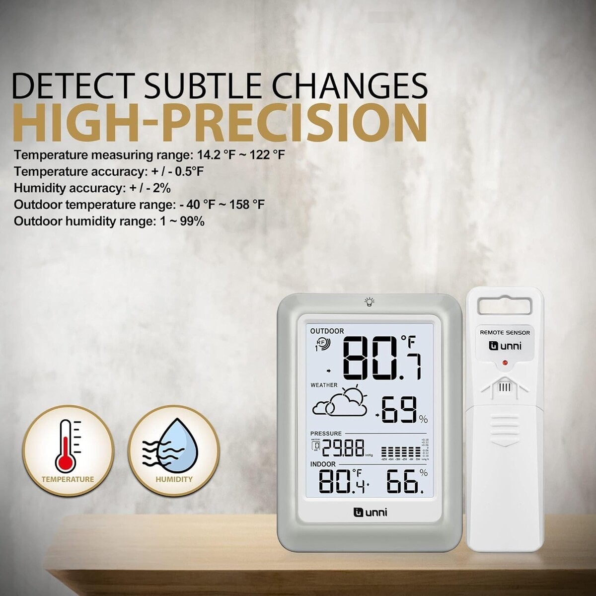 Compact Wireless Weather Station: High-Precision Indoor/Outdoor Monitor in White