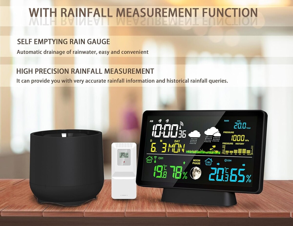 Your ultimate solution for monitoring weather conditions from the comfort of your home. This multifunctional weather station stands out with its self-emptying, maintenance-free rain gauge, ensuring you stay updated on rainfall levels effortlessly.