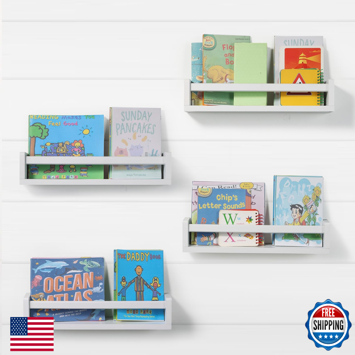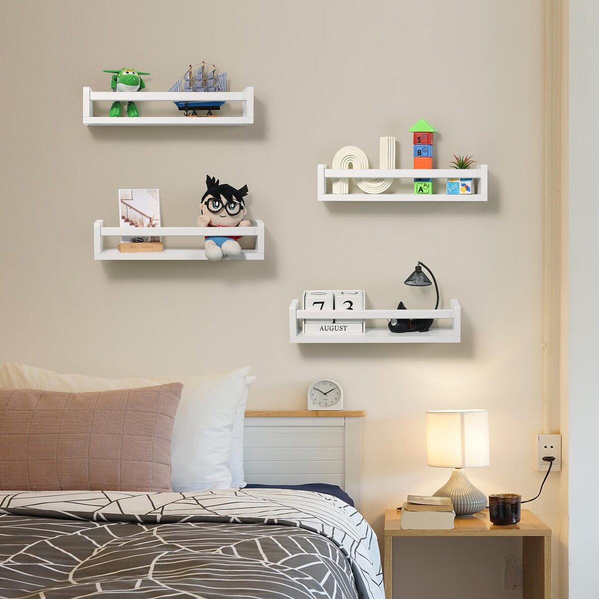 DUICIRX Set of 4 Wood Floating Nursery Book Shelves for Kids Room