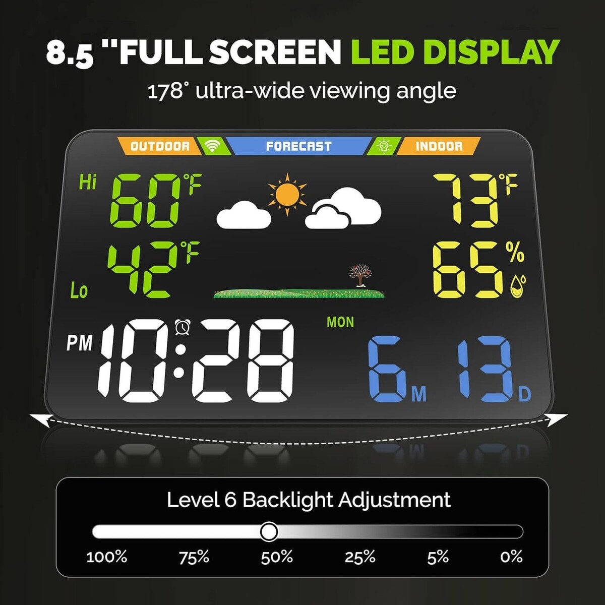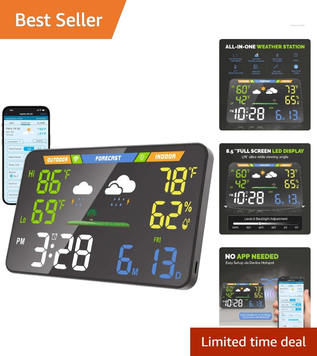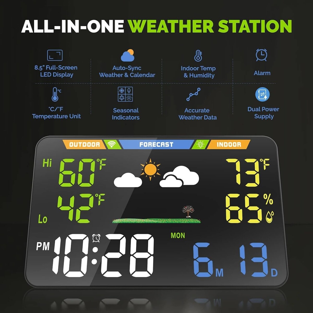 Smart Home 8.5" WiFi Weather Station - LED Display with Indoor Temperature