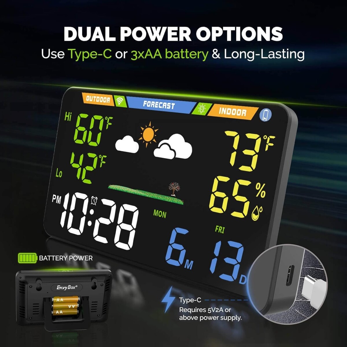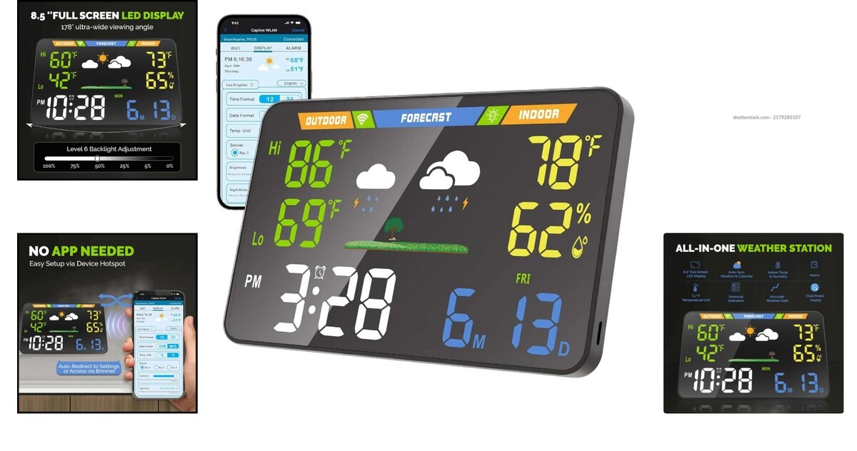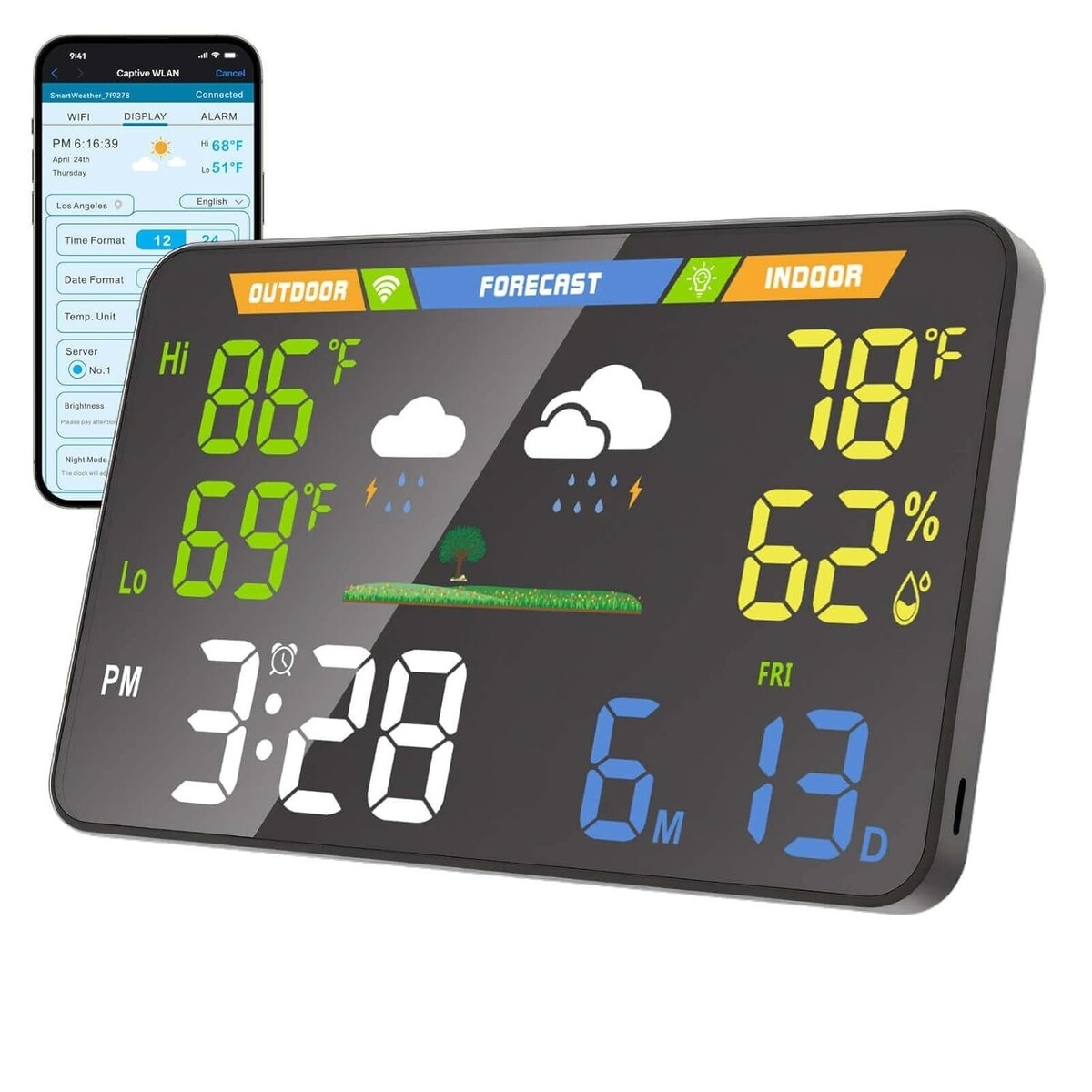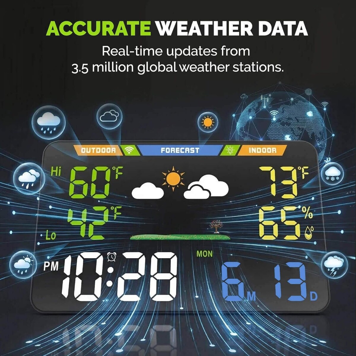 Smart Home 8.5" WiFi Weather Station - LED Display with Indoor Temperature