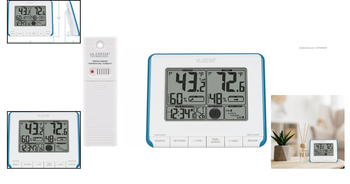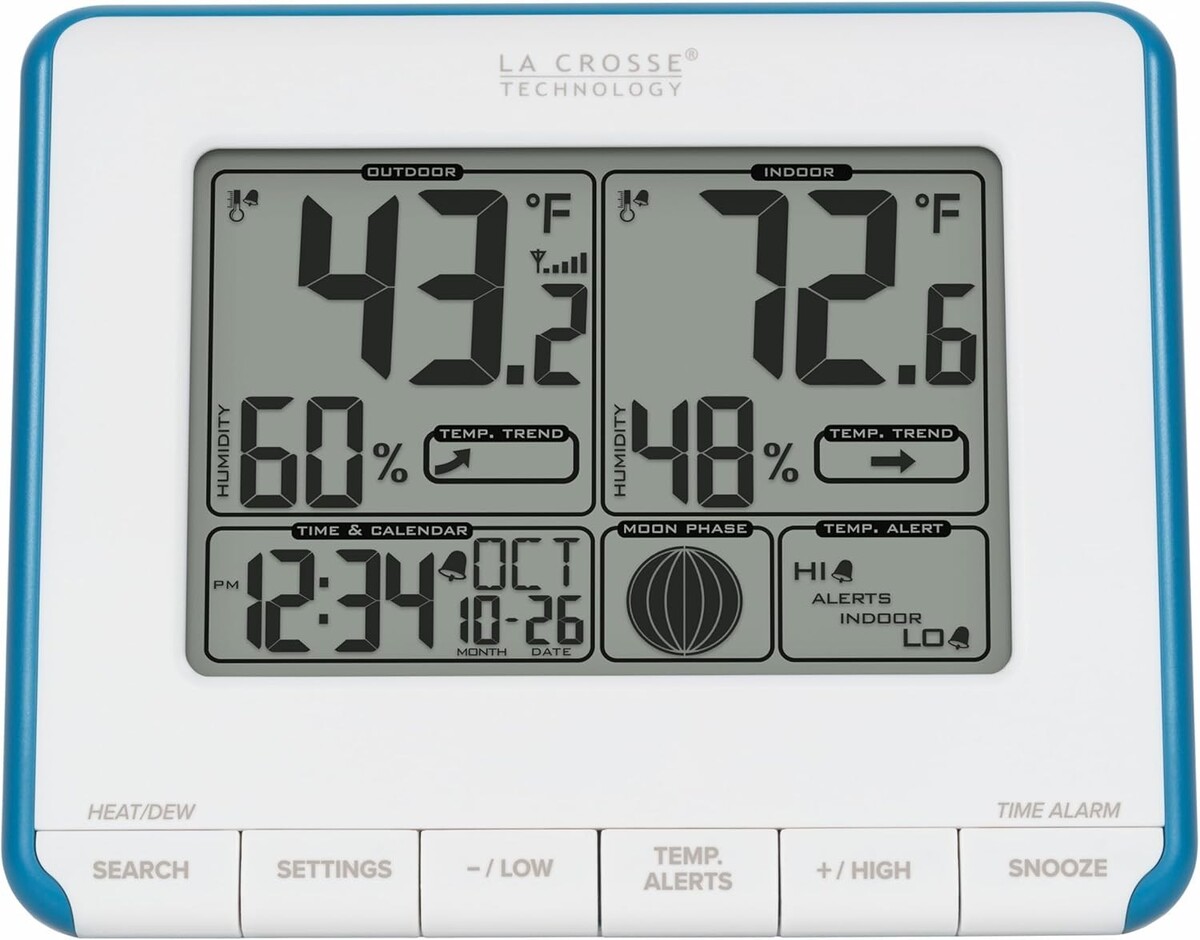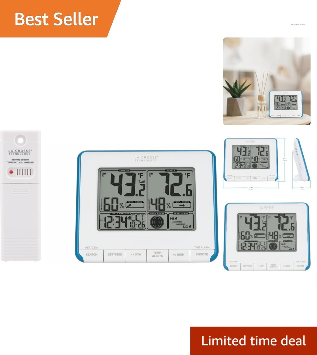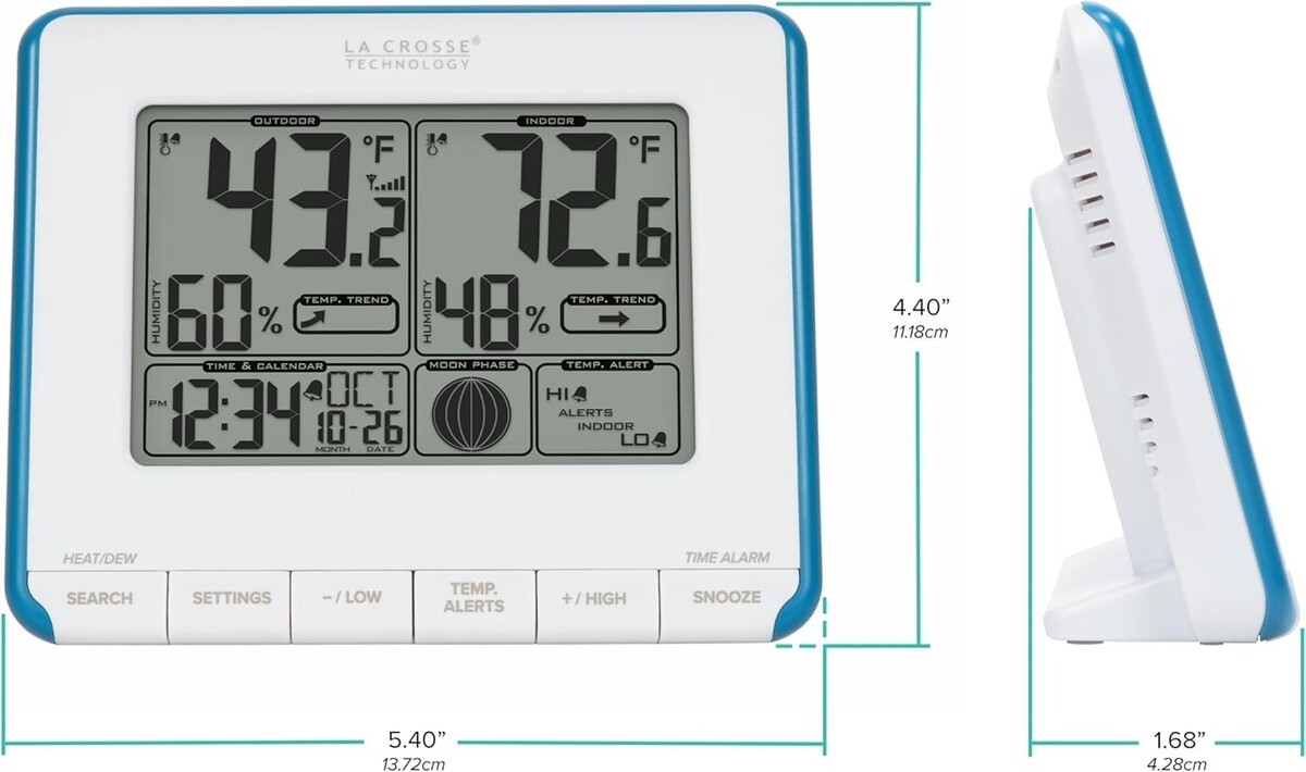 Stylish Wireless Weather Station with Heat Index & Dew Point, Teal Blue/White