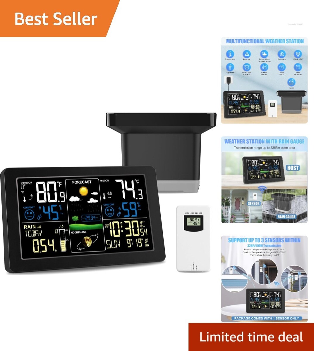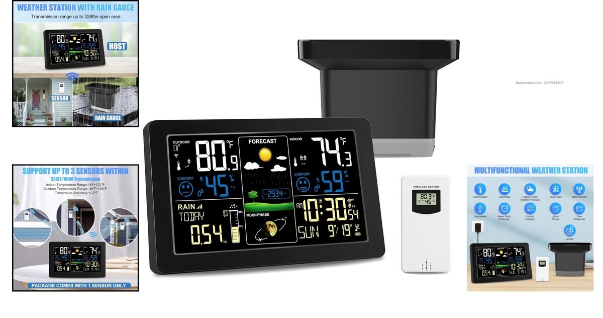 Weather Station with Rain Gauge: This multi-function weather station features a self-emptying, maintenance-free wireless rain gauge that accurately measures rainfall, keeping you effectively informed about precipitation levels around your home.