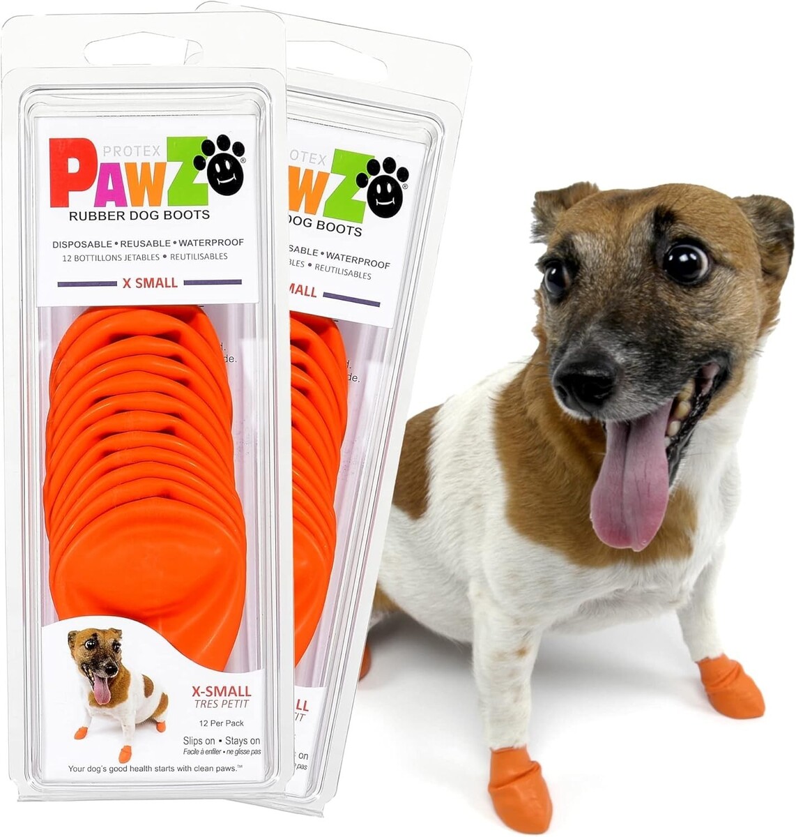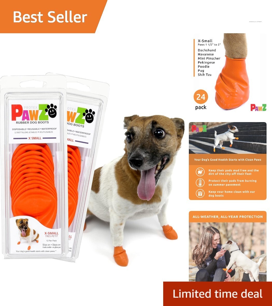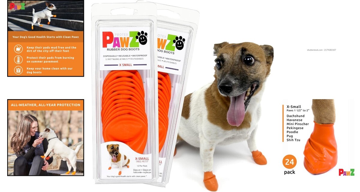PawZ Orange Dog Boots for Small Paws - Weather-Resistant & Easy Pull-On, X-Small