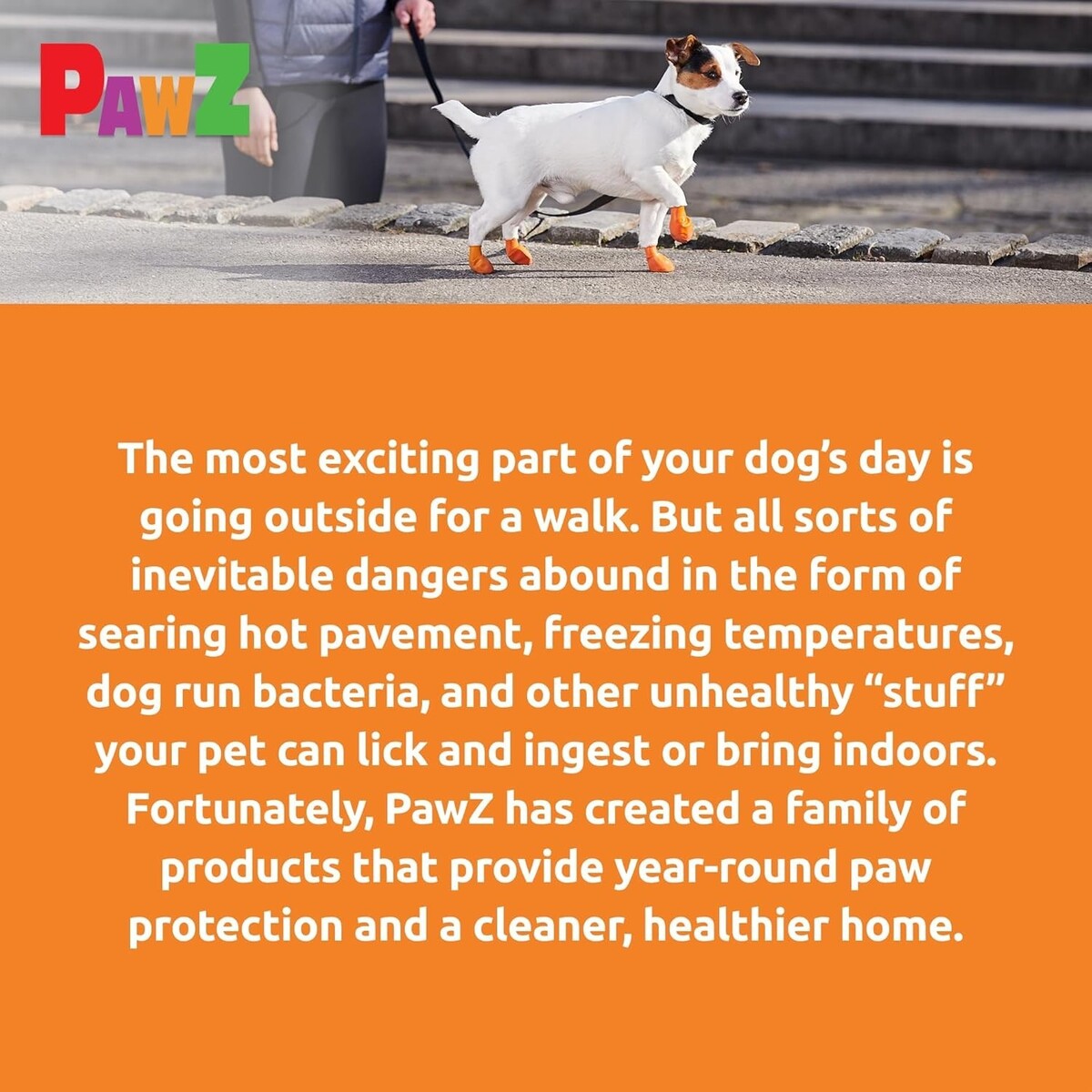 Protects your dog's paws from hot pavement, icy paths, and muddy puddles.