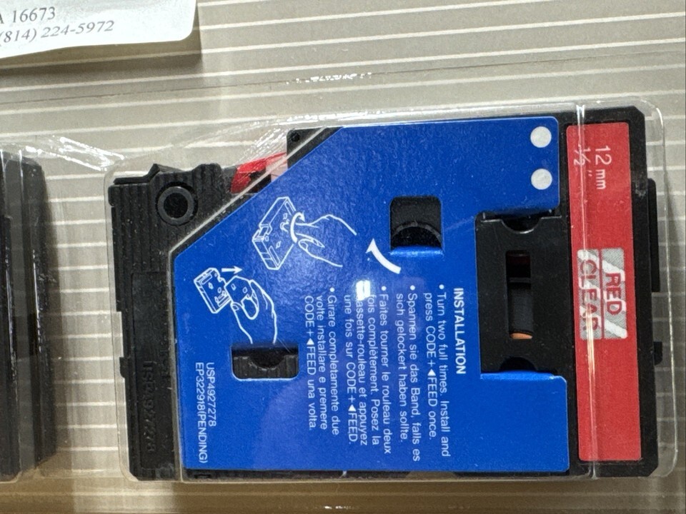 Lot Of 2~2 Pack Brother P-Touch Cassette Laminated Labels TC-11 12mm RED/Clear