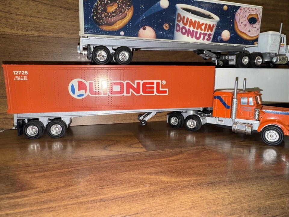 Lot Of 3 LIONEL O-Gauge Tractor Trailer Semiโs Conrail Dunkin Donuts & Lionel
