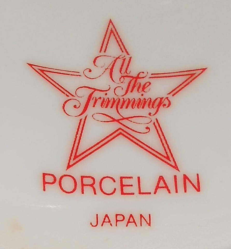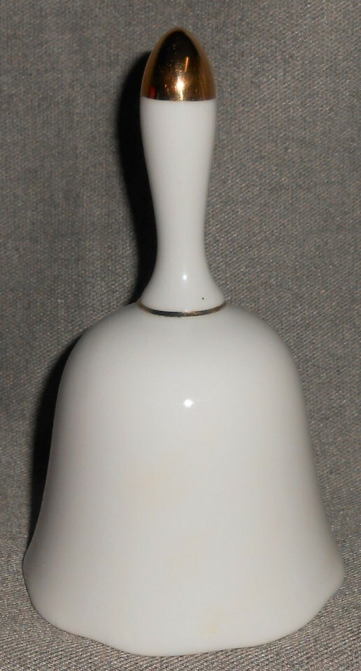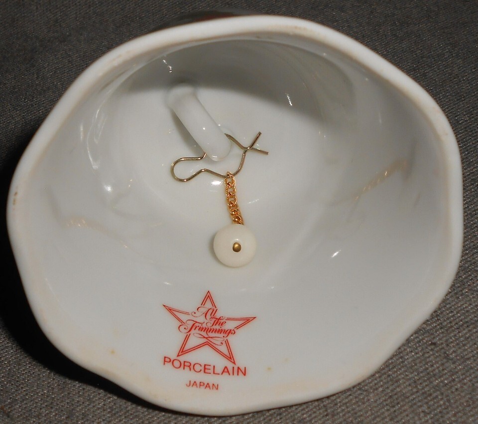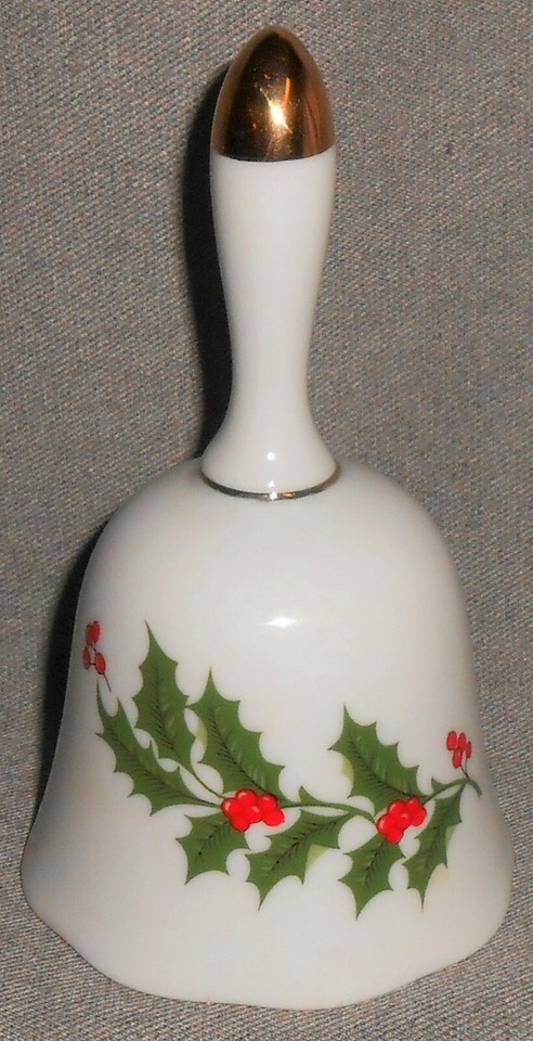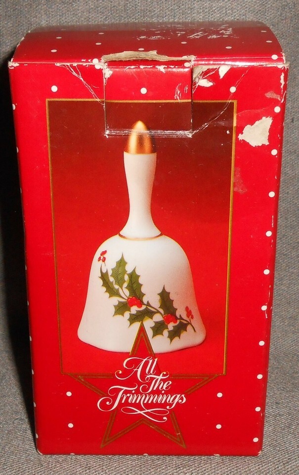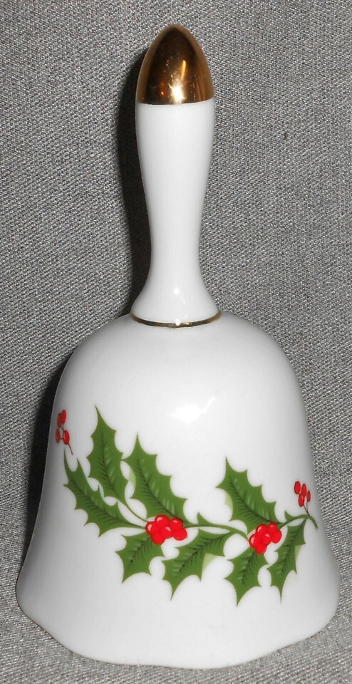This is a the 5 1/4" tall Dinner Bell from Macys and All The Trimmings with a Christmas themed Holly and Berry Pattern. It is in great pre-owned condition with no chips or damage - original box included though it has been worn from use and storage it still does the job of keeping bell secure.