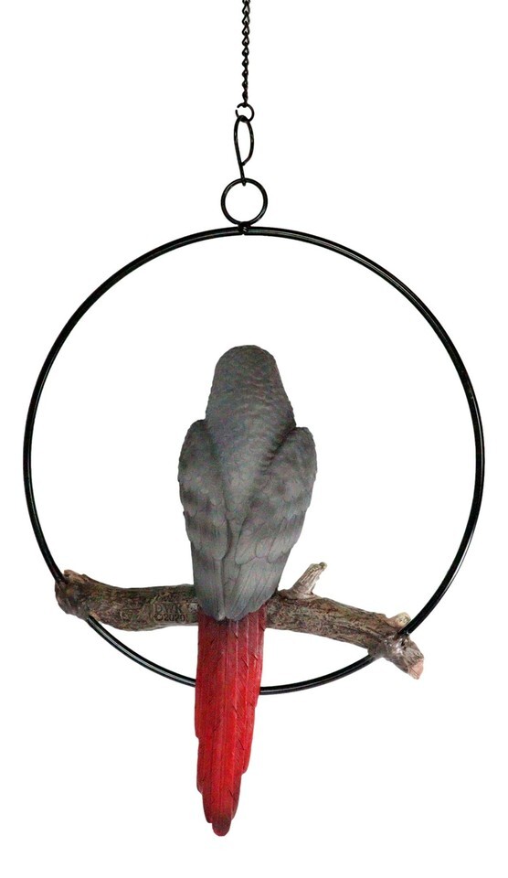 ? This Grey Macaw Parrot Hanging sculpture is made of designer composite resin, hand painted and polished. Color Tone may vary
