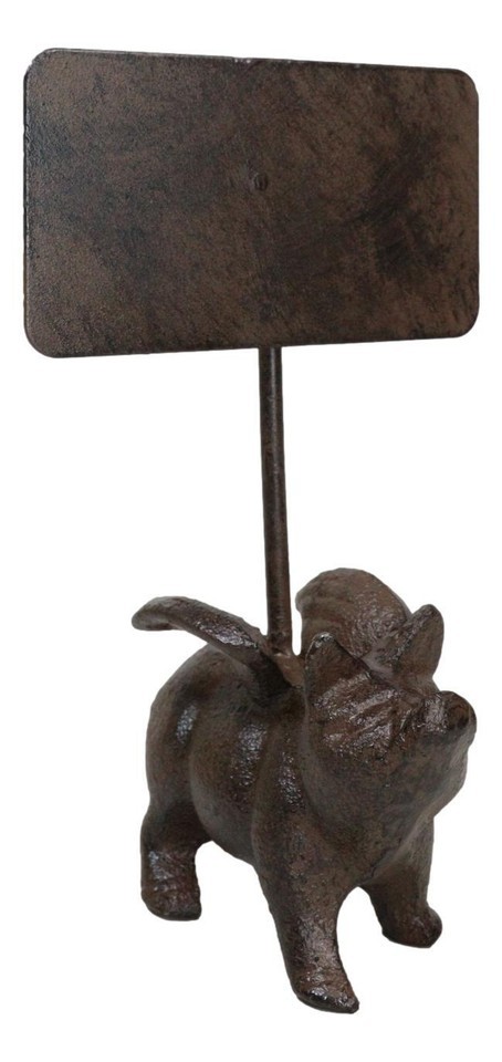 Cast Iron Rustic Western Farmhouse Flying Pig Chalkboard Pole Sign Figurine