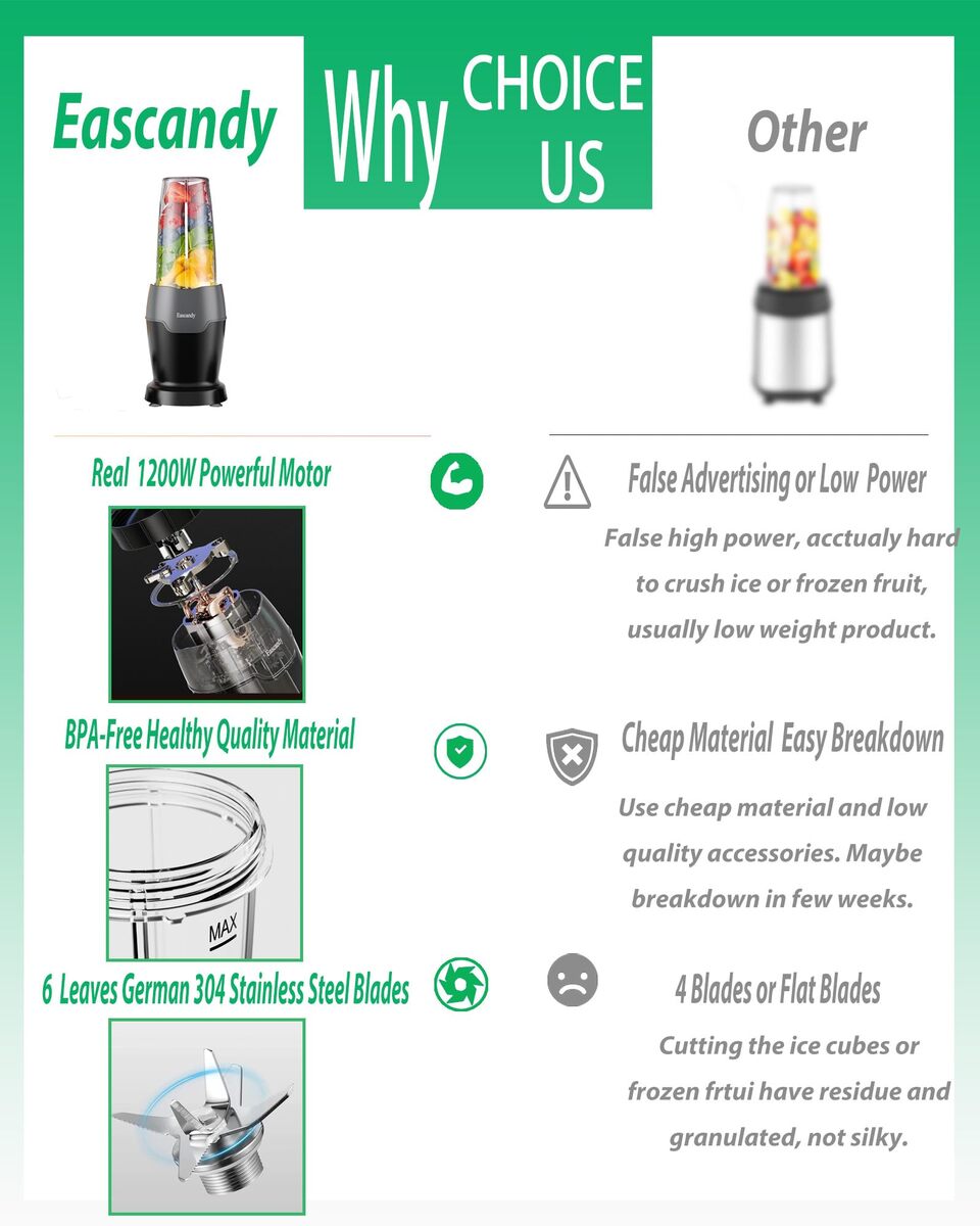 Marvelous 900W Power - Heavy duty pure copper brushless powerful 22000 RPM motor, no cutting corners, 20% more efficient and durable, can even crush ice and nuts in 10 seconds.,304 German 6 Leaves Blades - Extremely sharp 6 leaves Germany 304 stainless steel 3D blades, crush the frozen fruit or ice cubes just a piece of cake without granule residue.,Tritan BPA-Free To-Go Cups ? Extra portable Tritan material BPA-Free 2 pieces 24oz to-go cups, easy fit your car hold and for your take out, your healthy is our top priority.,Super Preferential 7 in 1 Set - Meet your daily fitness nutrition needs and giving you nutritious smoothie recipes that are easy to create every day..,Easy to Clean - Cups, lids, and blade assembly are dishwasher safe, blades use tap wash, motor base and milk frother must handwash. Blades O seal ring must insert the gap after wash.