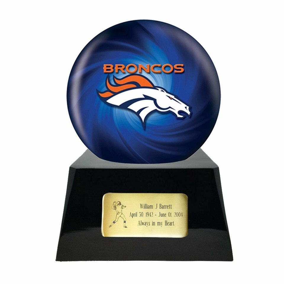 Large/Adult 200 Cubic Inch Denver Broncos Metal Ball on Cremation Urn Base