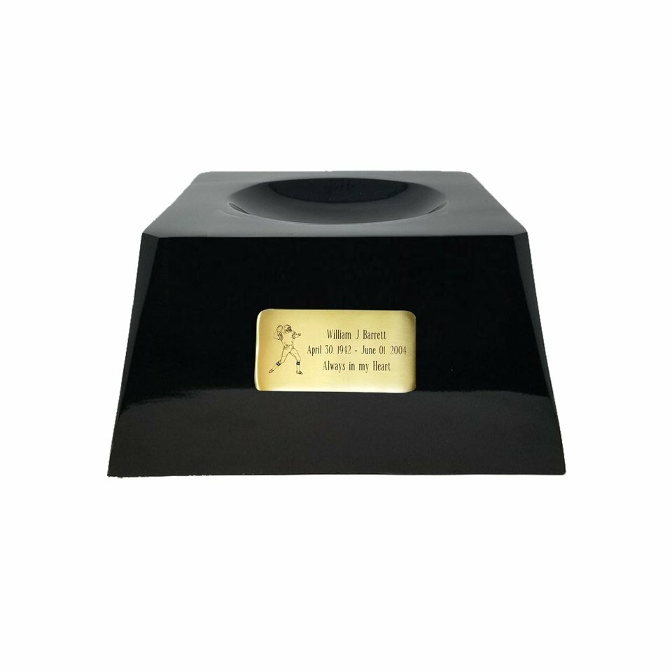 The team ball decor is placed on top of the urn base and it rests freely on the urn. This unique piece of decor looks like a trophy, thus preserving the memories of your loved ones in the true spirit of the sport. The Team Ball Decor makes a beautiful memorial product for the fan.