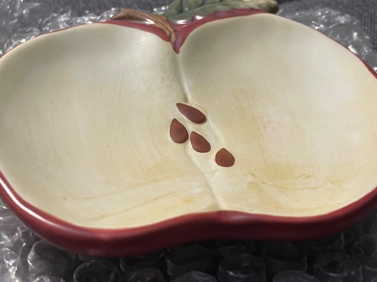 This charming collectible piece features a vibrant yellow apple design with rich red edging and detailed green leaf accent. From the discontinued Apple Orchard collection, this spoon rest is both functional and decorative ? perfect for fall kitchens, farmhouse decor, or seasonal harvest displays.