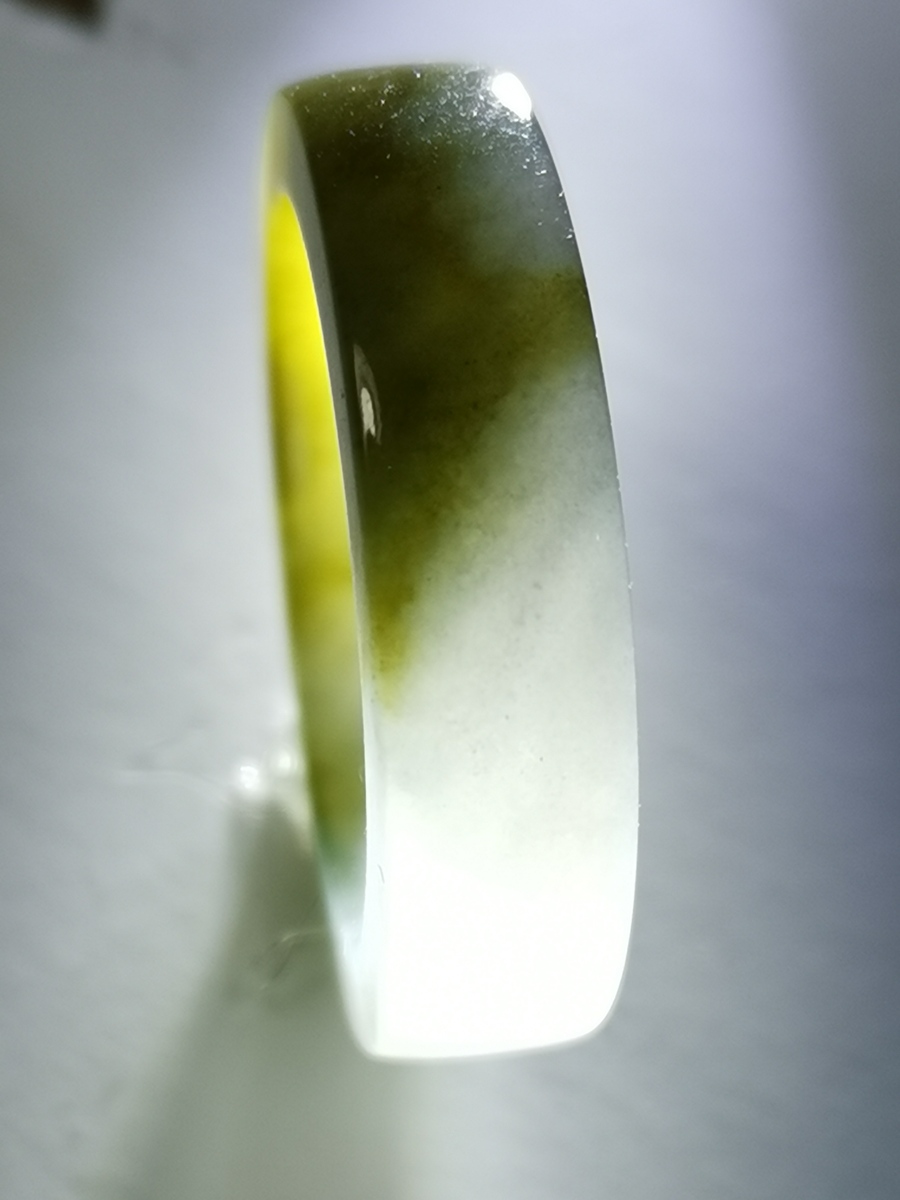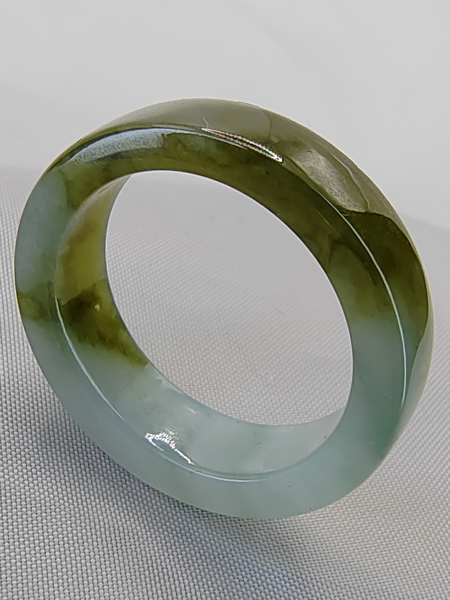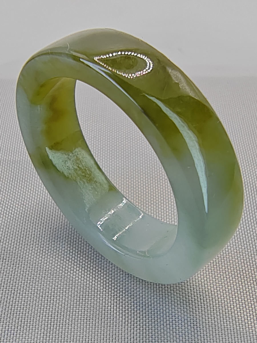 Icy Bluish Yellow 100% Natural Jadeite Jade Band Ring (US Size - 11)