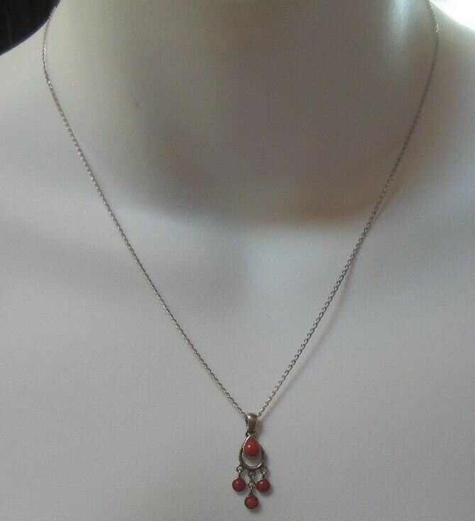 Stamped Boma 925 Sterling Silver Coral Pendant Necklace