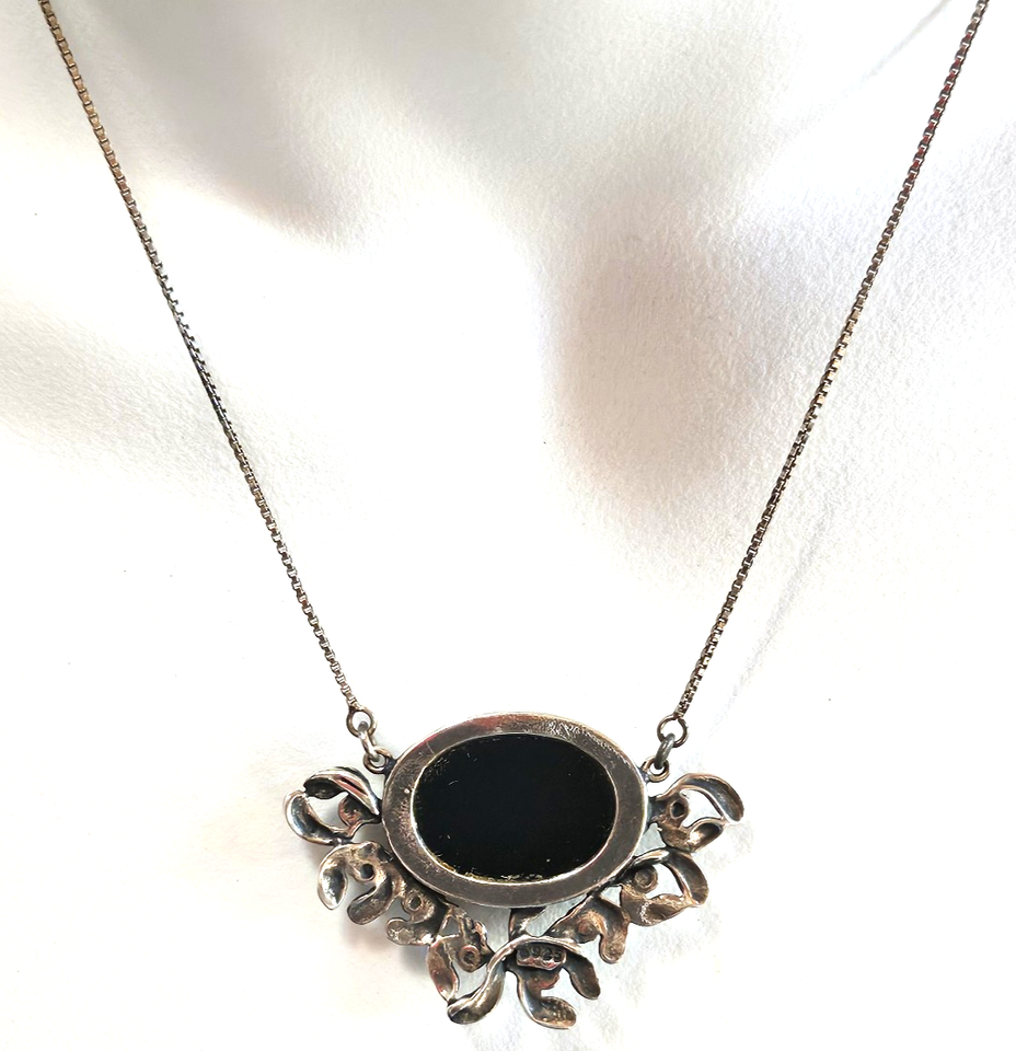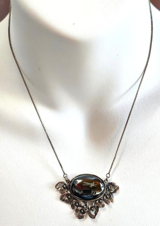 Vintage 925 Sterling Silver Hematite Pendant Necklace 16.5"