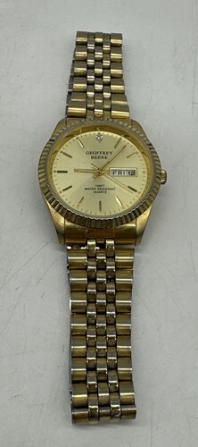 Geoffrey Beene Watch Men's Leather Band NOS Needs Battery Replaced