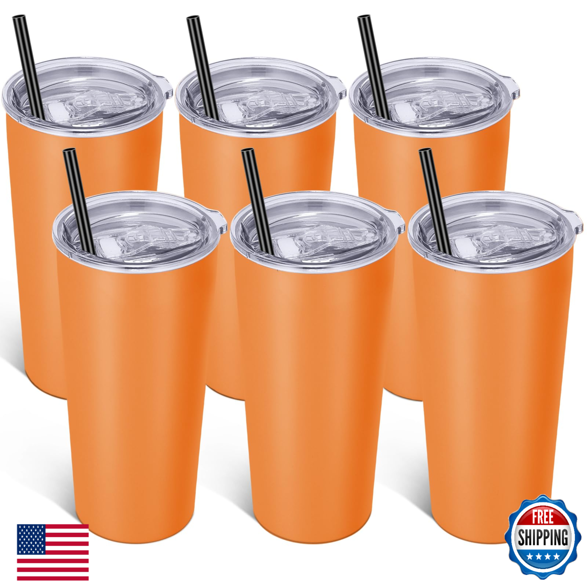 VEGOND 20oz Stainless Steel Tumbler Travel Coffee Mug Orange 6 Pack Vacuum Insul