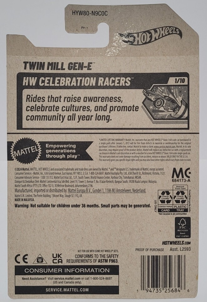 2025 Hot Wheels TWIN MILL GEN-E 27/250 HW Celebration Racers Series 1/10