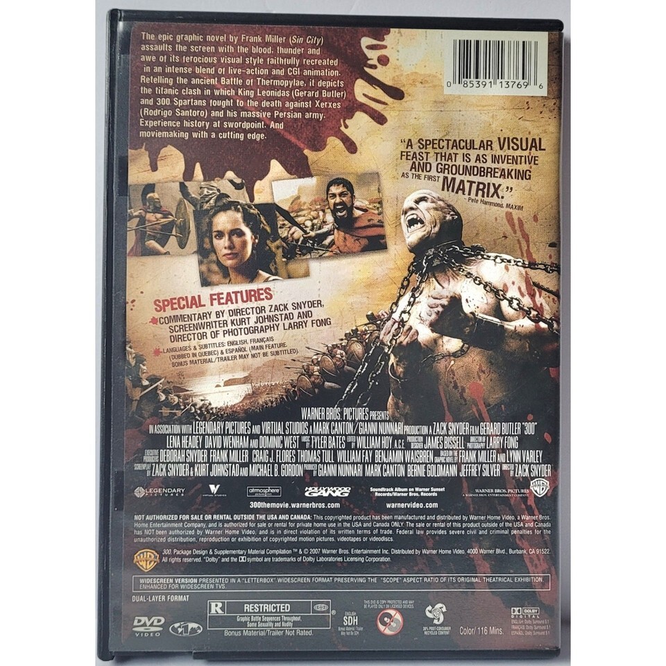 300 DVD 2007 Widescreen Edition Gerard Butler Leana Heady Dominic West Region 1