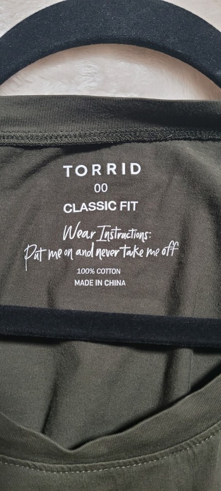 The Women's Torrid Classic Fit Cutout Top in size 00 (Plus) is a stylish and comfortable cotton t-shirt perfect for various occasions such as travel, parties, and casual outings. This green top features a solid pattern with a round neckline, short casual sleeves, and a pullover closure. The lightweight material and plus fit make it ideal for the summer, fall, and spring seasons. With a casual sleeve type and accents of cutouts, this basic style top from Torrid is a versatile addition to any woman's wardrobe.