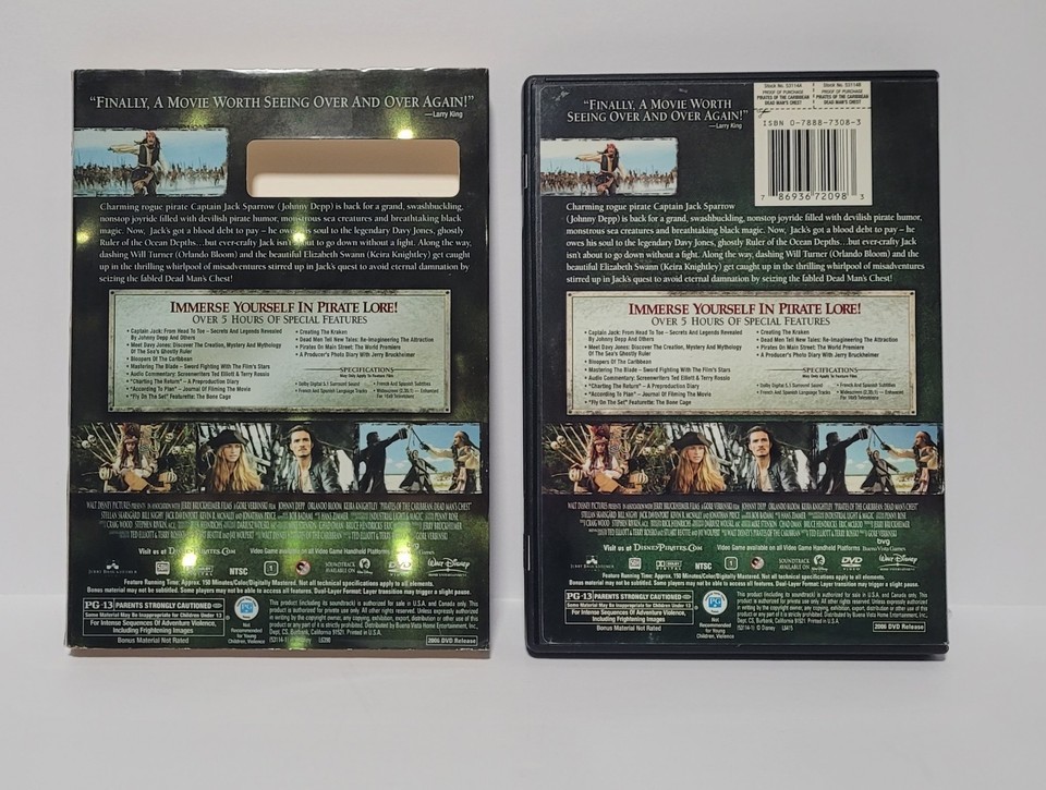 Pirates of the Caribbean: Dead Man's Chest (DVD 2006) 2-Disc Slip Cover