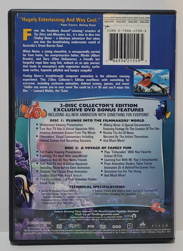Finding Nemo (DVD 2003) 2-Disc Collector's Edition Walt Disney Pixar Region 1