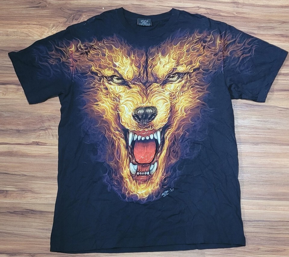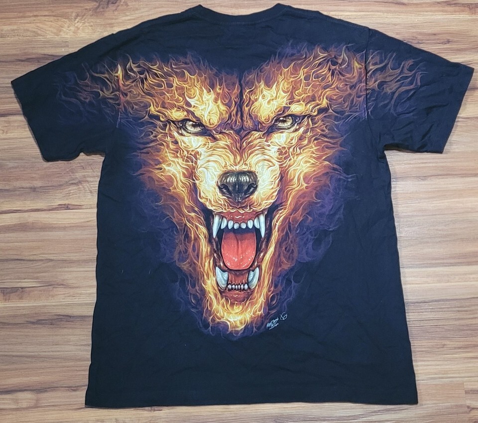 Glow In The Dark Flaming Wolf Shirt Men XL and 27 similar items