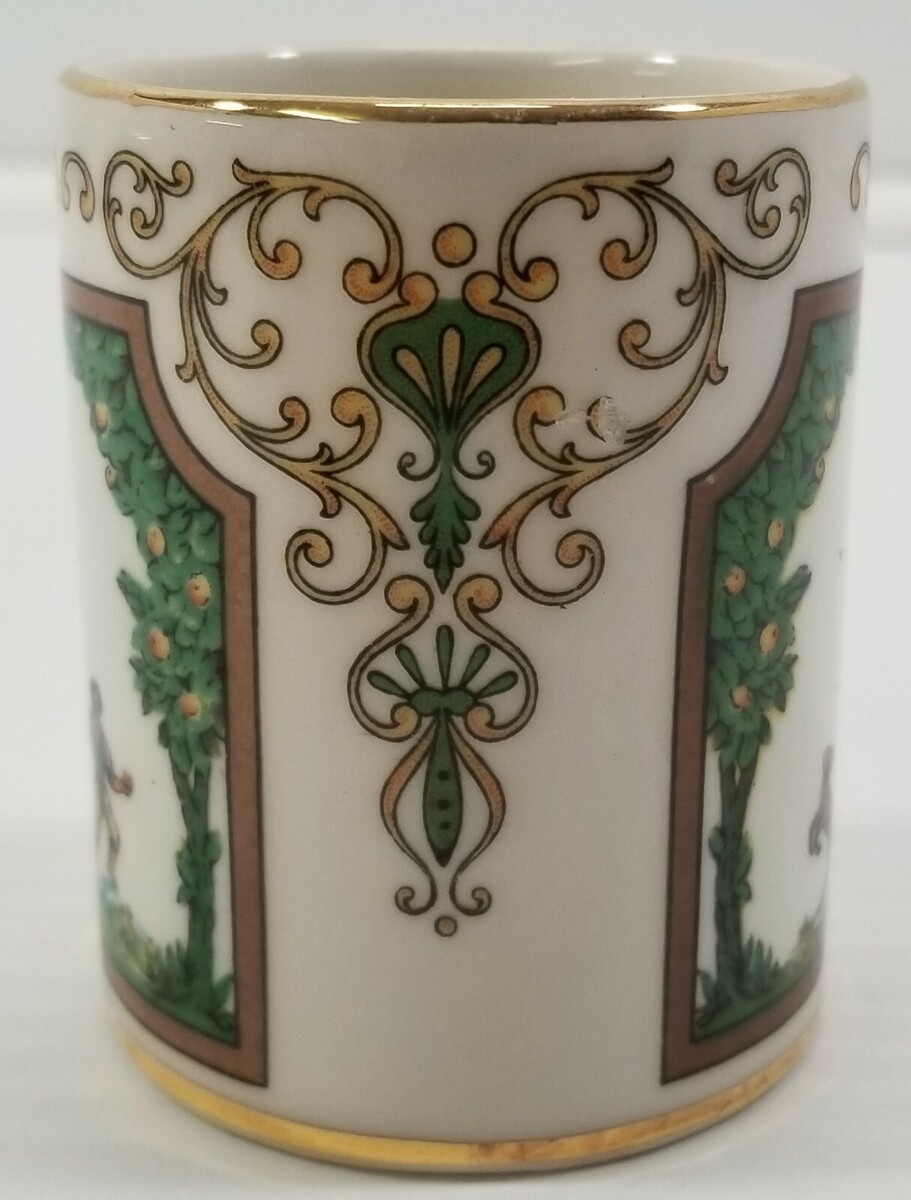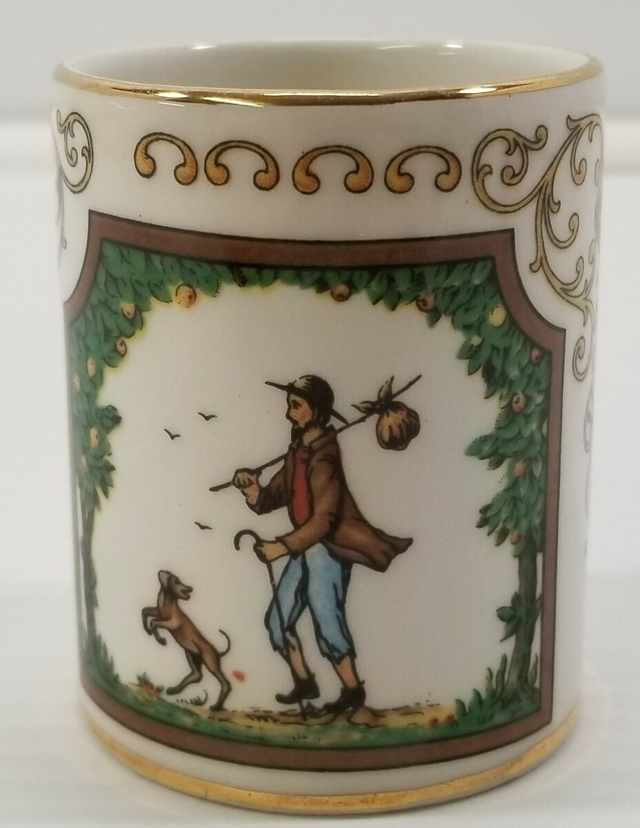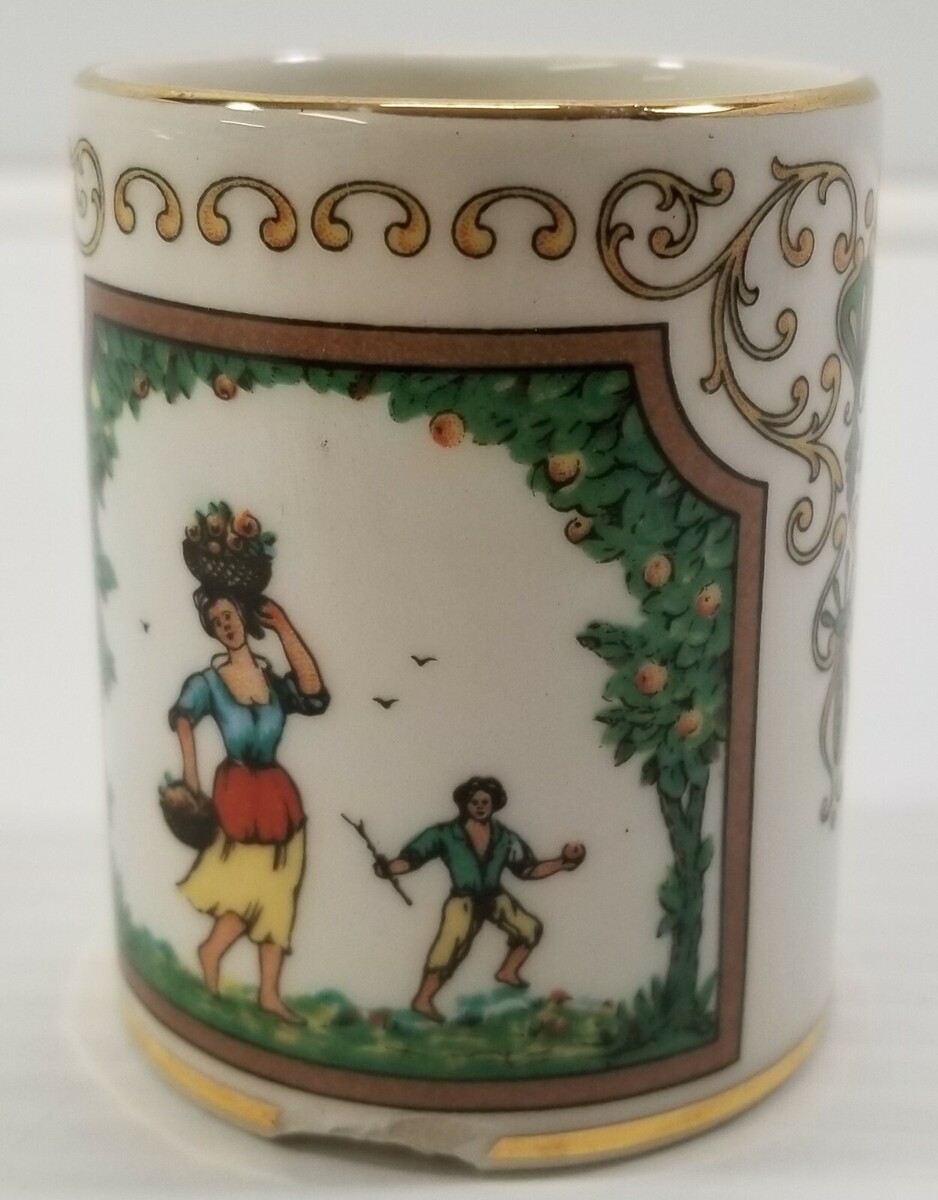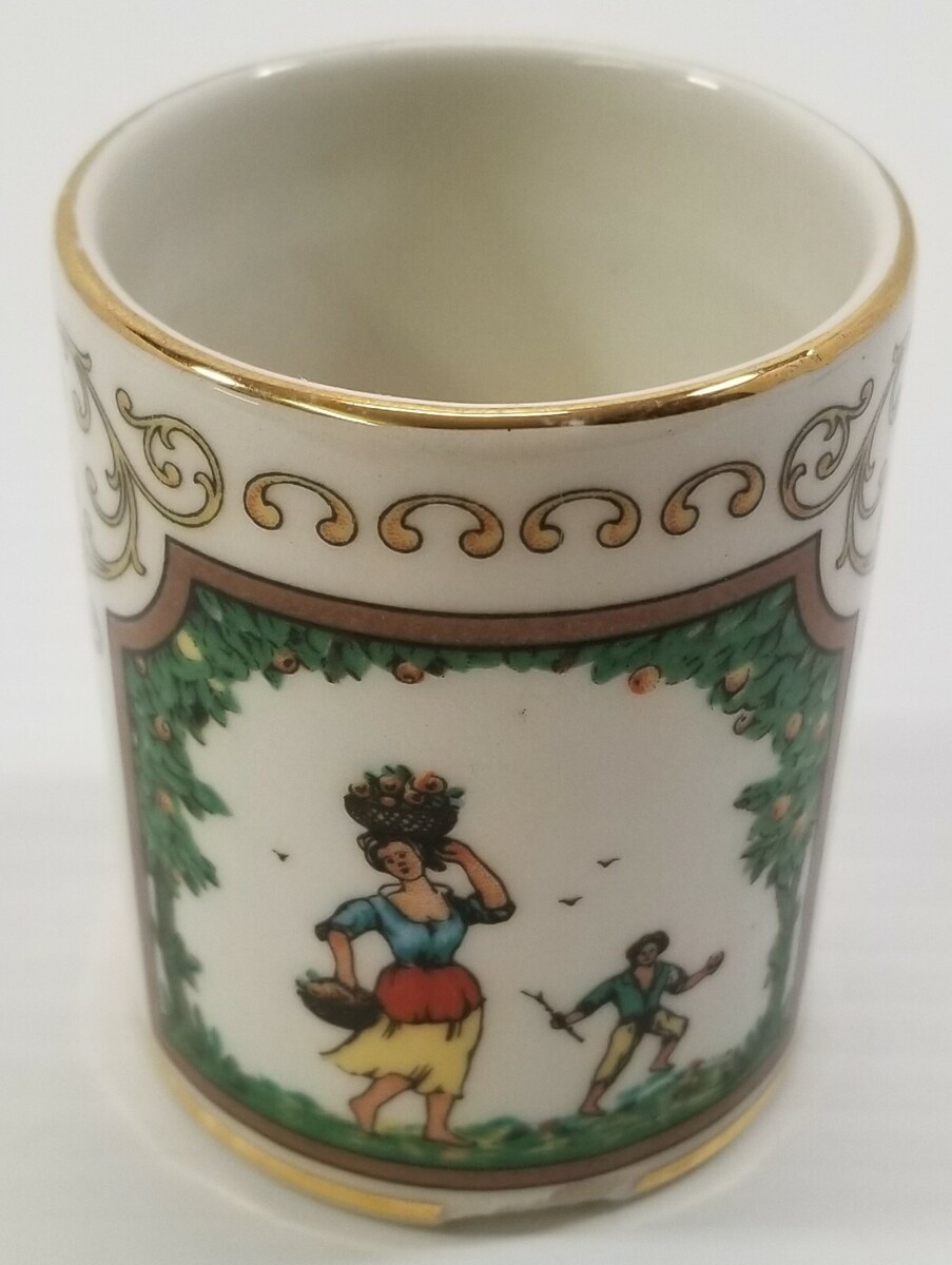 EE) Vintage AUR Gold Tone Man Woman Nomad Dog Small Shot Glass Cup Demitasse