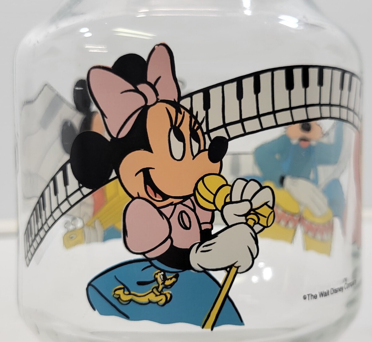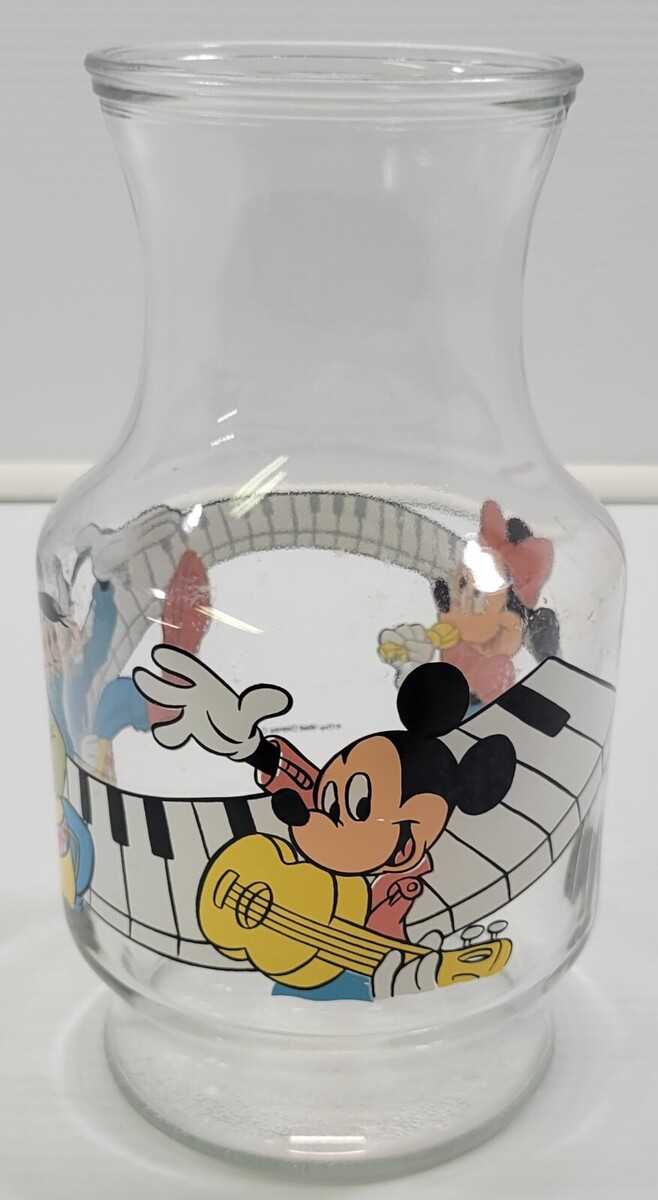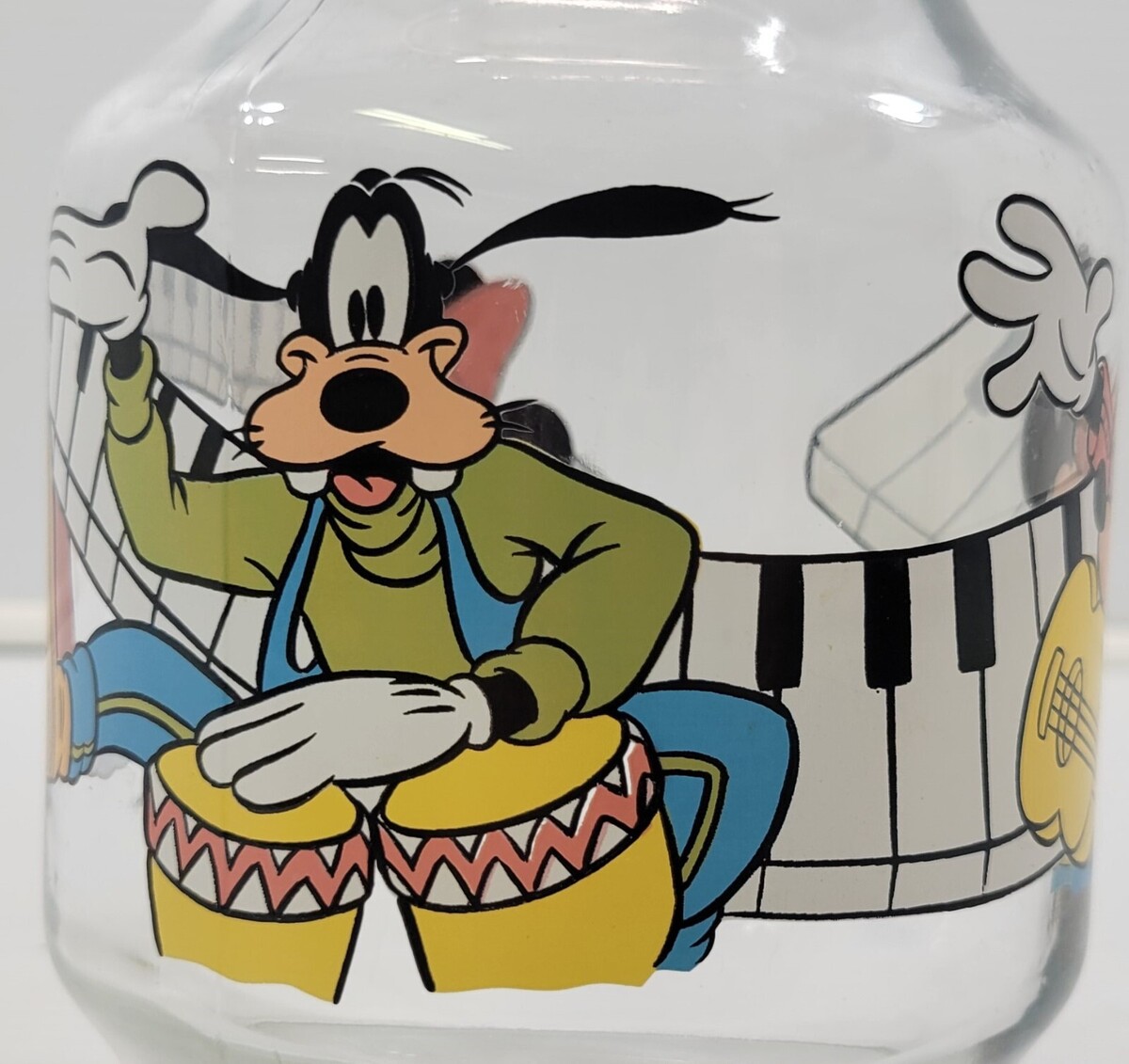 Vintage Walt Disney Mickey Minnie Mouse Goofy Glass Pitcher Music Band Keyboard