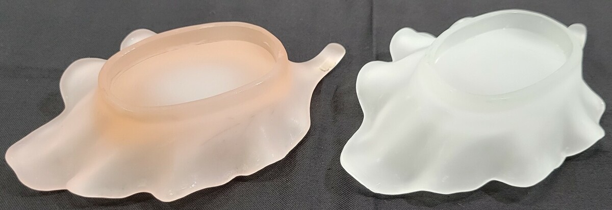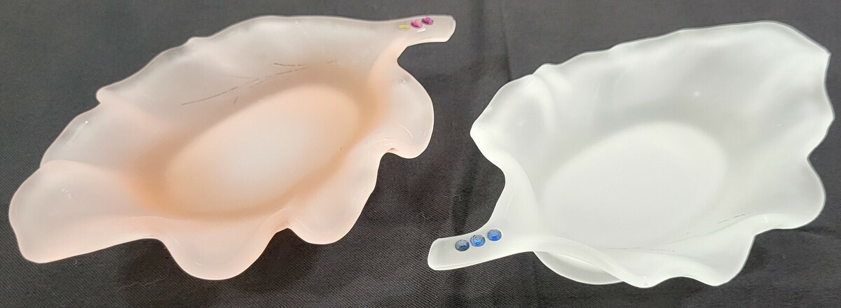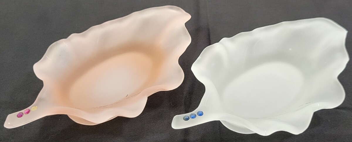 Set of 2 Vintage Frosted Glass Leaf Trinket Jewelry Plates Pink White