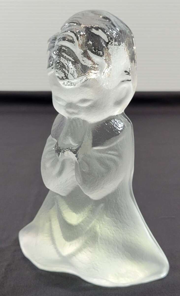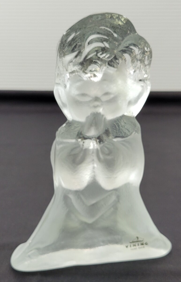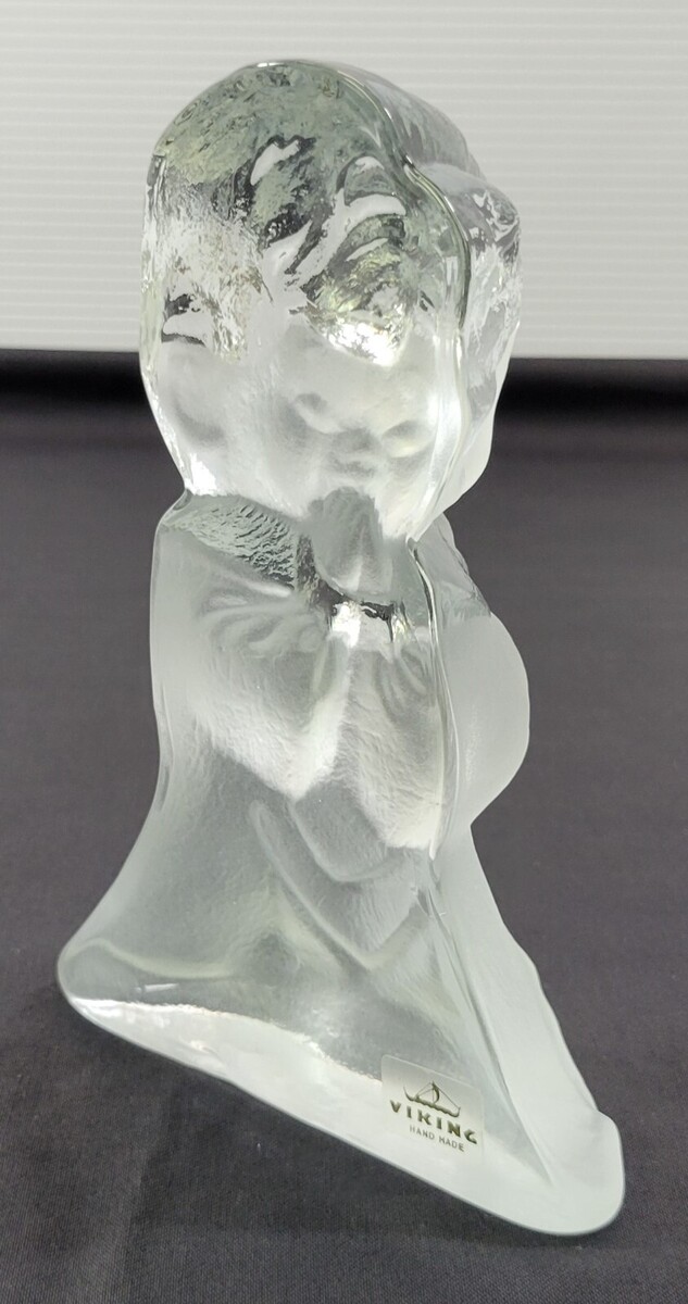 Vintage Viking Hand Made Frosted Glass Praying Kneeling Boy