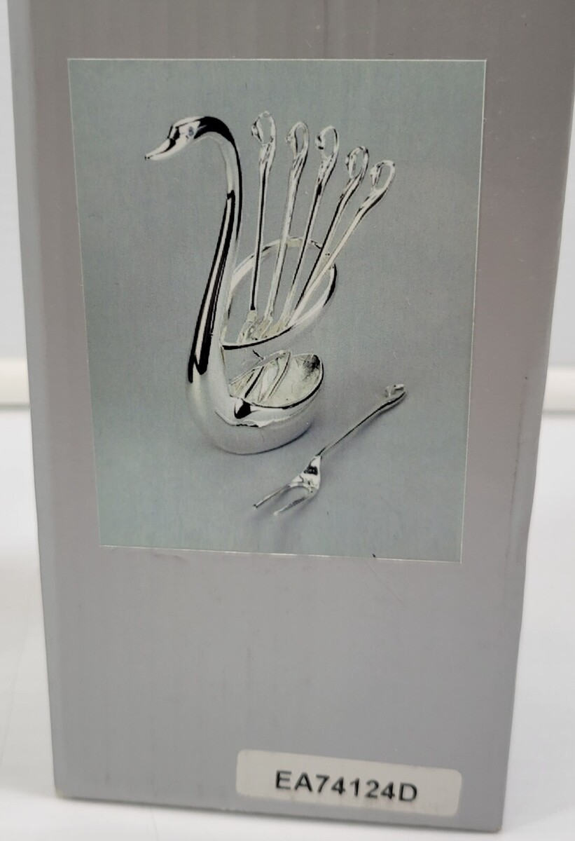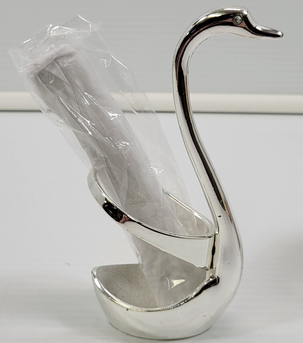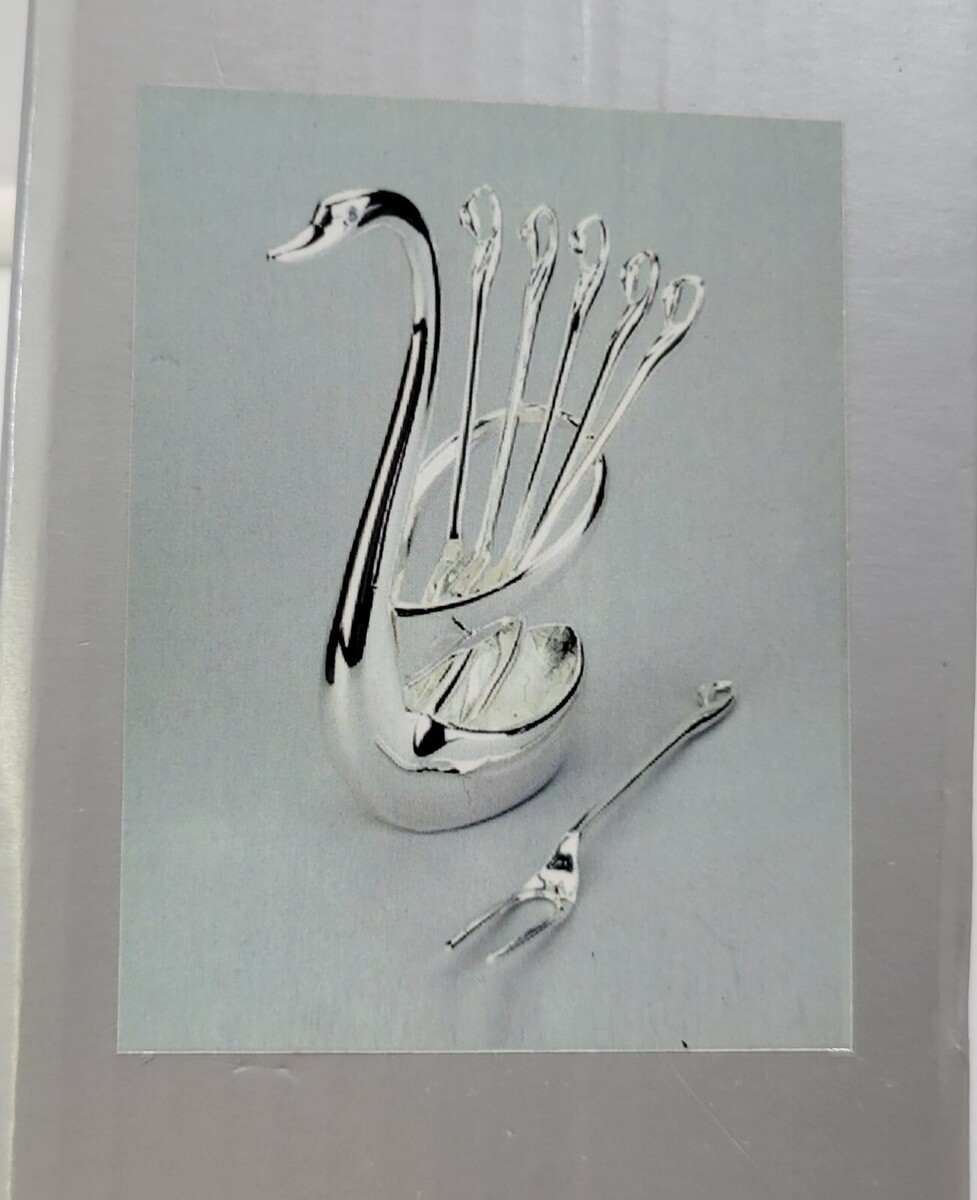 N) Tableware Polished Silver Fruit Dessert Tasting Fork Spoon with Swan Base