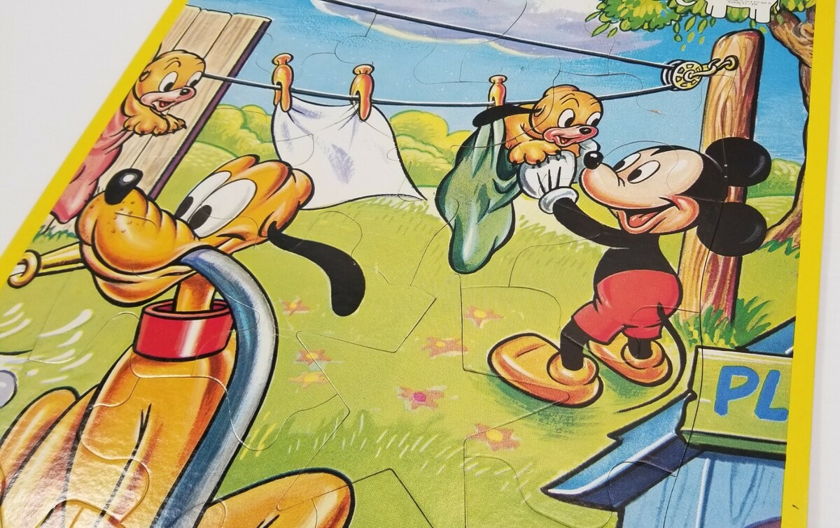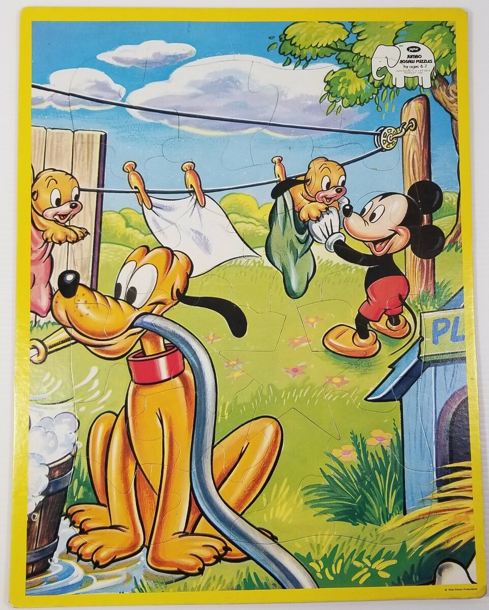 N) Vintage Jaymar Jumbo Walt Disney Mickey Mouse Pluto Frame Poster Tray Puzzle