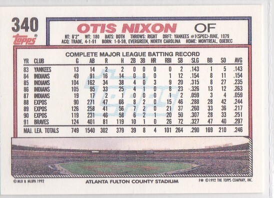 M) 1992 Topps Baseball Trading Card - Otis Nixon #340