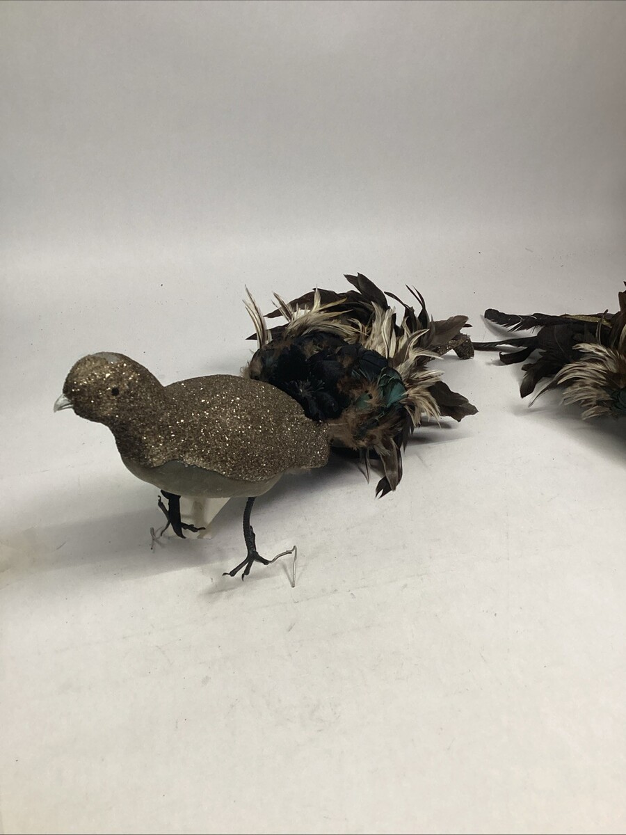 Goldbug Studio Set Of 2 Peacock Figurines W/ German Glass Glitter & Mica Flakes