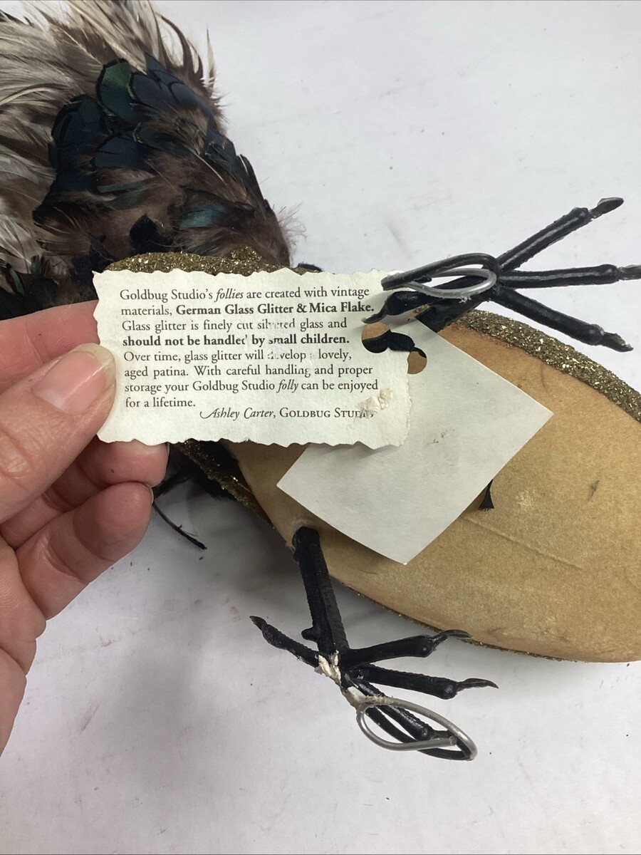 Goldbug Studio Set Of 2 Peacock Figurines W/ German Glass Glitter Mica Flakes. Both come with their original tags.