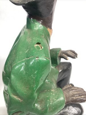 Please read. Figure is damaged in several places which can all be seen in the pictures. This is a vintage set. The most damaged piece is the musicians hat as as damaged in 3 spots. Possibly made of Paper Mache. The musician measures 15?Hx6.5x6.5?. The upright piano measures 7.5?Lx1.75?Wx10?H. The one set of drums is 10x7x6.5?. The individual drum is 3.5?Dx3.75?H