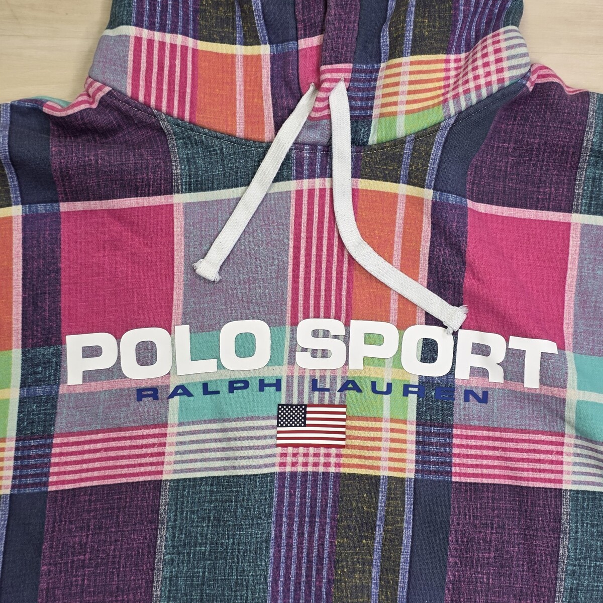 Polo Sport Ralph Lauren Men Pastel Tone Madras Tartan Plaid Hoodie