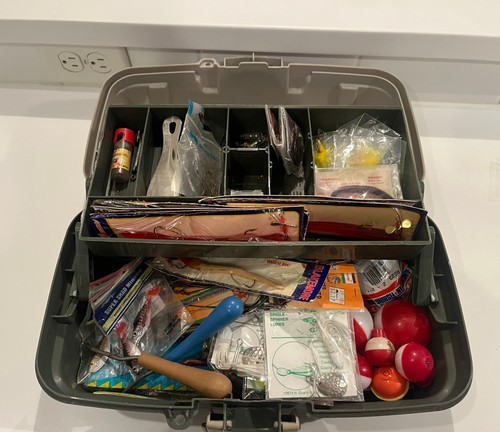 VTG Tackle Box Fishing Gear Lures Hooks Bobbers Tools Weights Plano Kelly’s Fish