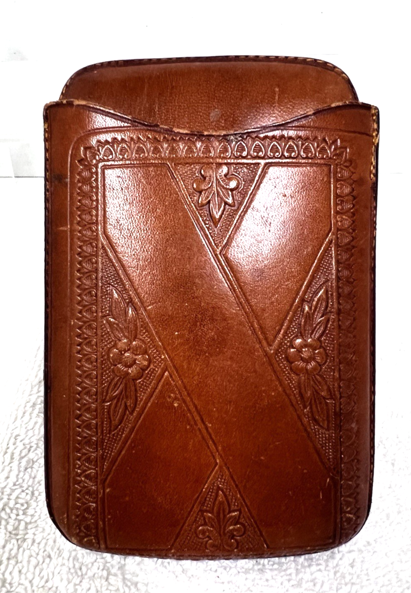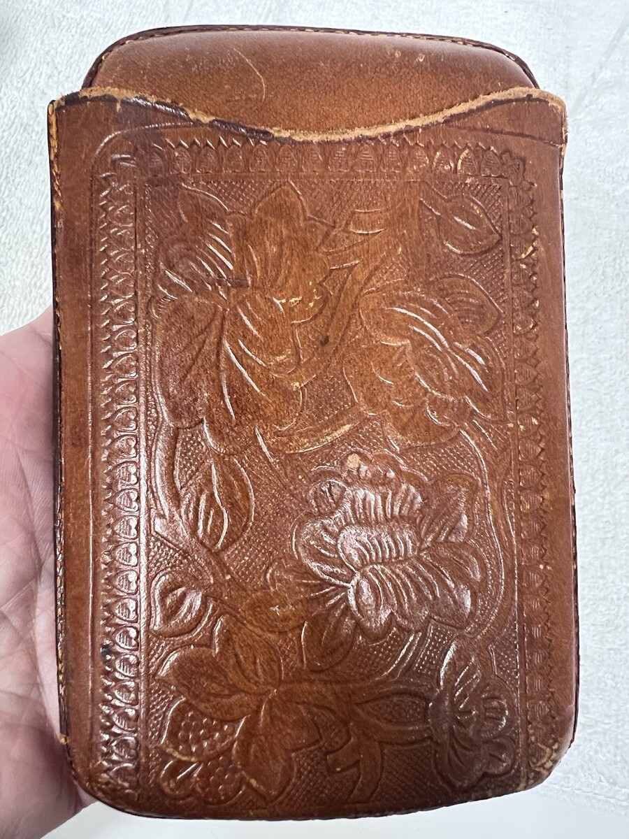 Hand Tooled Leather Cigar or Cigarette Case Holder Vintage 5 x 3 3/8 Inches