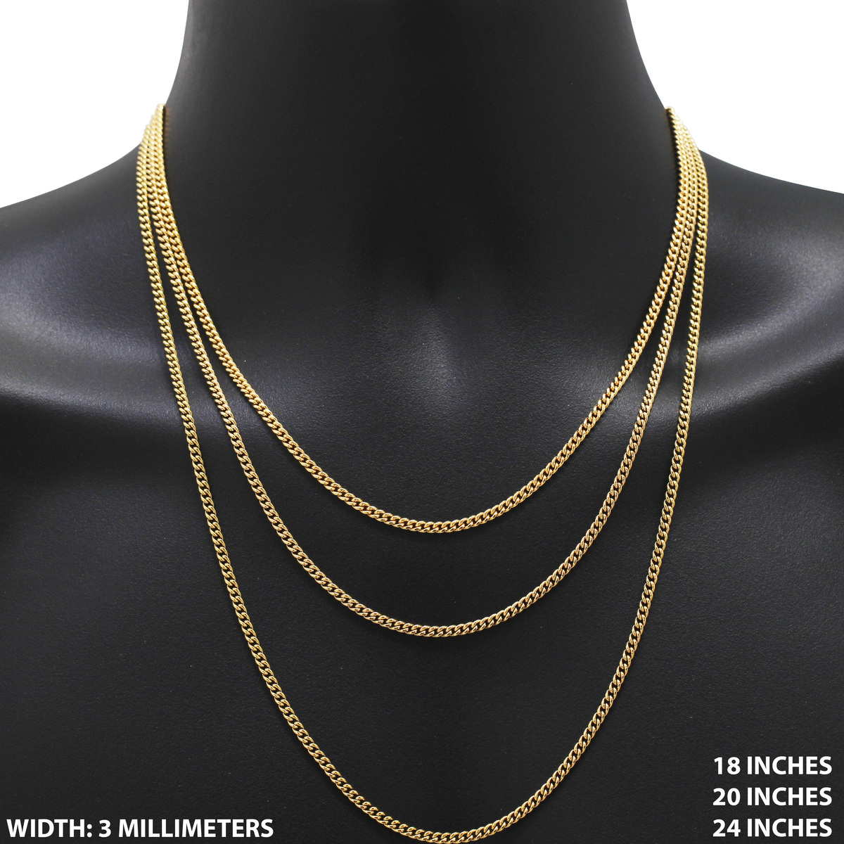 316L Stainless Steel 18k GP 3-5mm Miami Cuban Link Necklace Bracelet 7.5”-24”