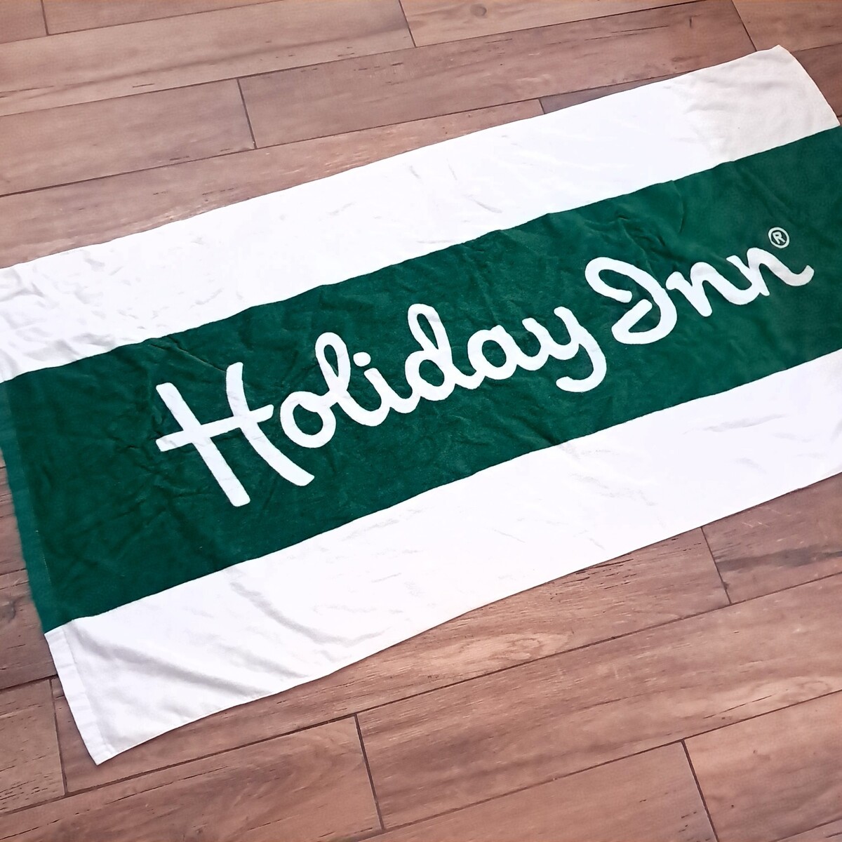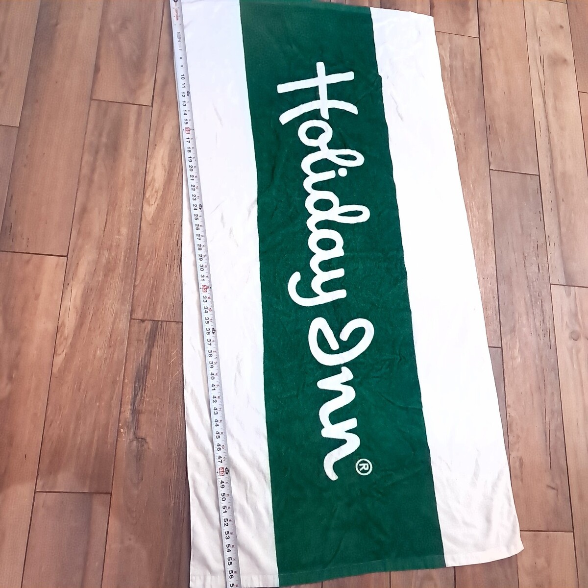 Vintage Holiday Inn Beach Towel Stripe Green white logo hotel cotton soft velour
