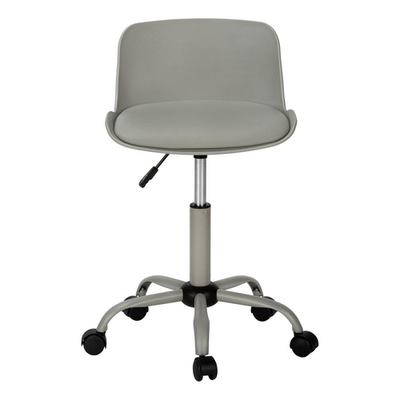 Sized especially for kids, this small desk chair will provide your child with a supportive, comfortable place to sit when they work and play. It features ergonomic design with a lowered back rest to promote good posture and a padded seat with a soft feel. A convenient lever underneath the seat allows the chair to be adjusted to the best height for your child's size. A swivel seat and a stable, 5-star base with casters that roll smoothly in all directions make moving the chair easy and fun! You and your child will give this juvenile, low-back office chair in grey with a grey metal base good grades for its support, comfort, and functionality. Low-back office chair for kids in grey with a grey metal base Ergonomically designed backrest curves and is extra-wide to provide superior lower back support and the seat is padded for comfort 360-degree swivel seat and white 5-star base with hooded casters offer mobility, while an adjustable height mechanism allows the chair to be optimized for your child's size Assembly required: Illustrated instructions and all hardware are provided for convenience (additional tools may be needed) Product dimensions: 18.5 inches L x 18.5 inches W x 25.5 inches HSpecifications:- Box 1 Height : 20.00- UPC : 680796054632- Box 1 Depth : 20.00- Attribute Dimensions (in) : 25.5, 18.5- Box 1 Width : 8.00- Brand : Monarch- Box 1 Weight : 16.00- Packing Time (days) : 3- Attribute Depth (in) : 18.5- Delivery Time (days) : 8- Length: 18.5 in, Width: 18.5 in, Height: 25.5 in