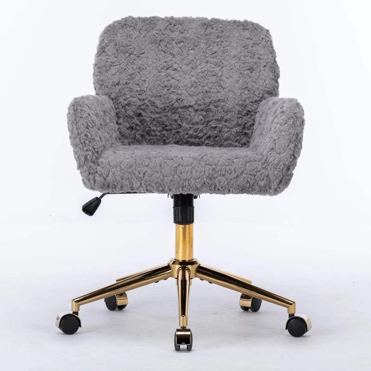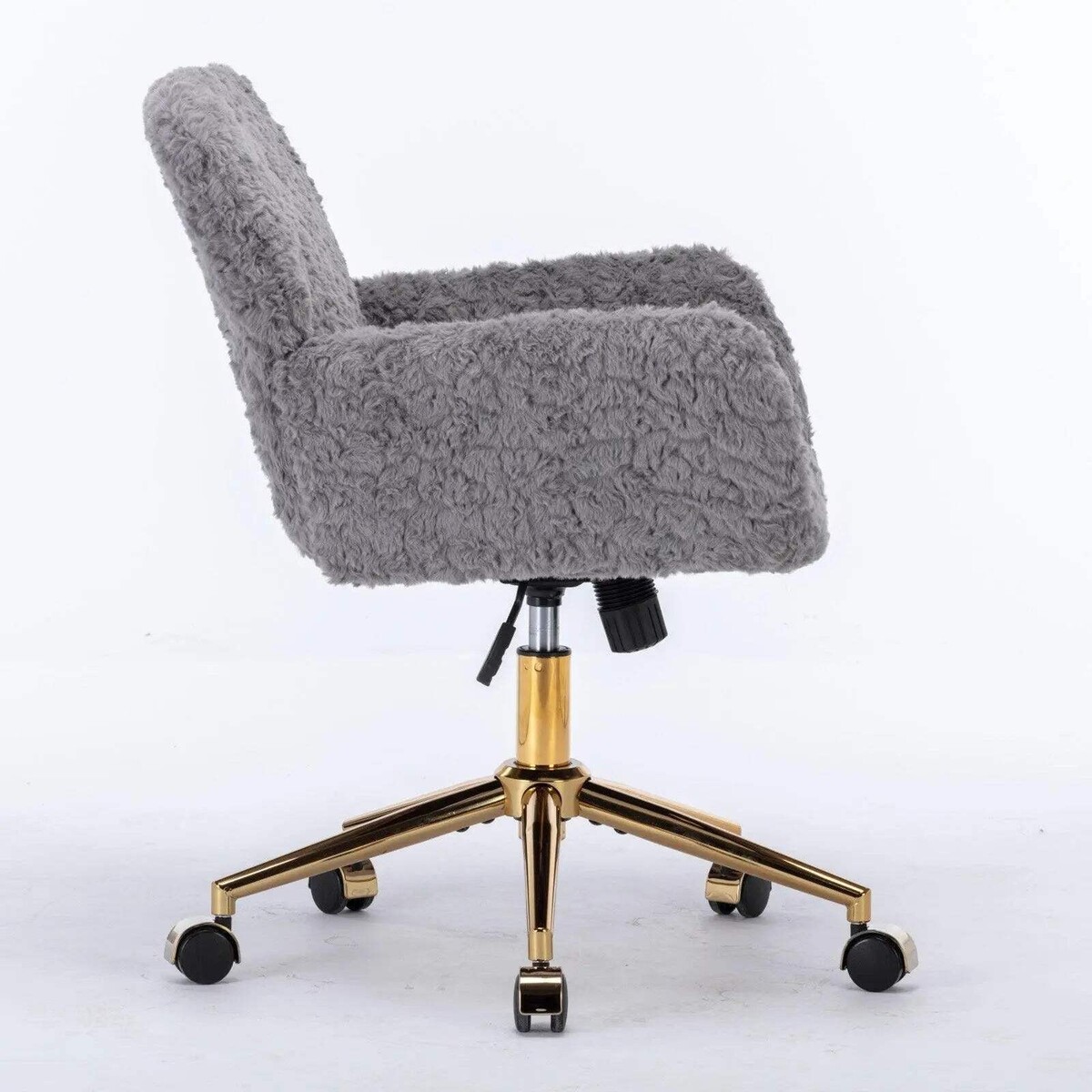 A A Furniture Office Chair,Artificial rabbit hair Home Office Chair with Golden Metal Base,Adjustable Desk Chair Swivel Office Chair,Vanity Chair(Gray)