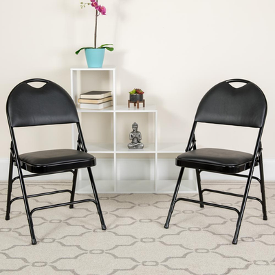 Ultra-Comfort Commercial Grade Triple Braced Black Vinyl Folding Chair with Easy-Carry Handle
